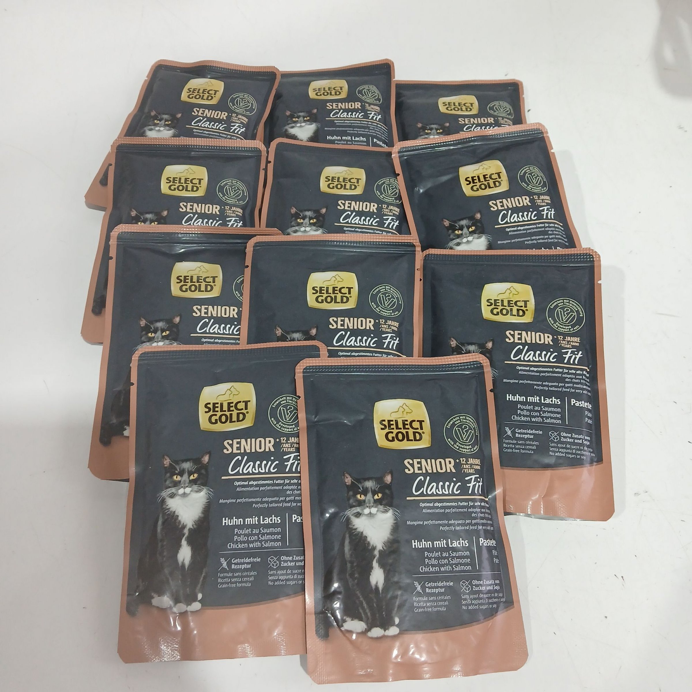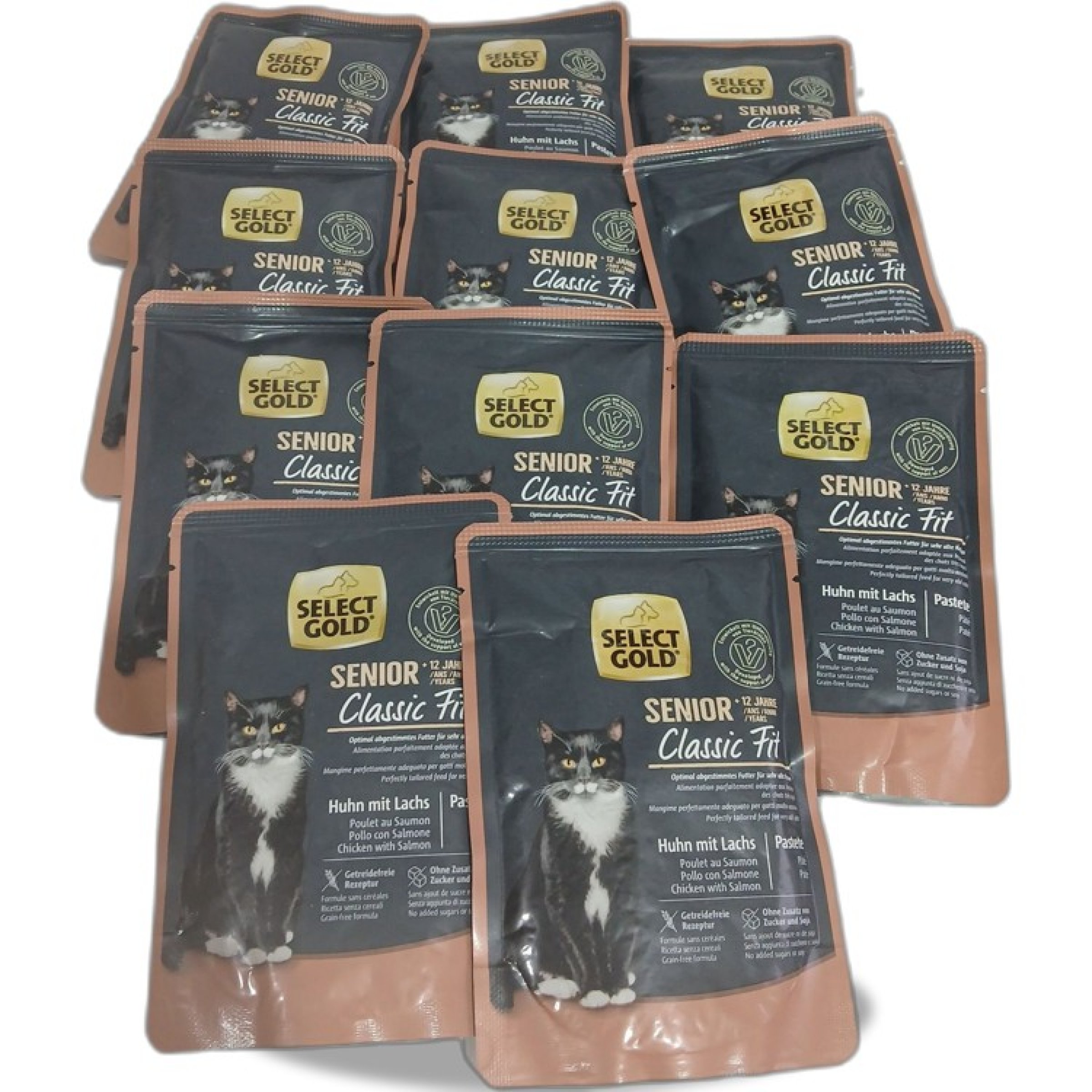 1 Packung Select Gold Senior Classic Fit Katzenfutter Huhn mit Lachs 11x85g