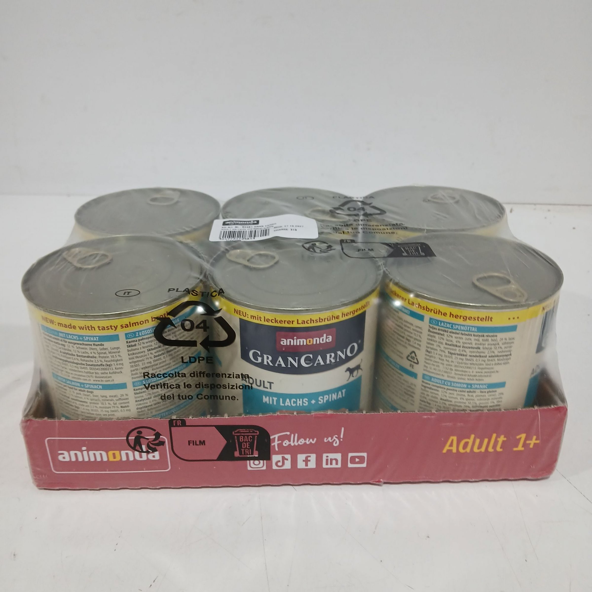 1 Packung Animonda GranCarno Adult mit Lachs + Spinat 6x800g