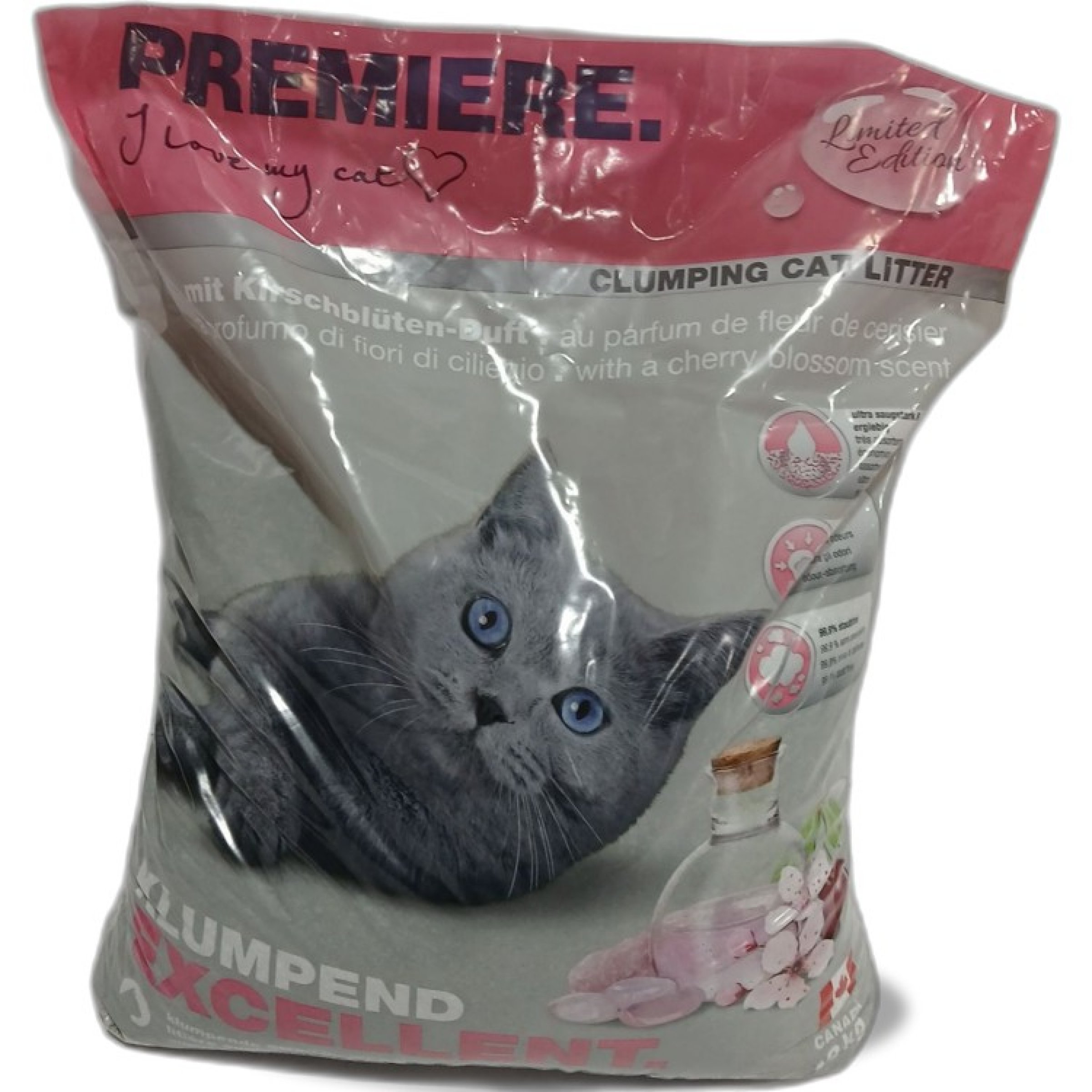 1 Sack Premiere Clumping Cat Litter mit Kirschblütten-Duft 12kg