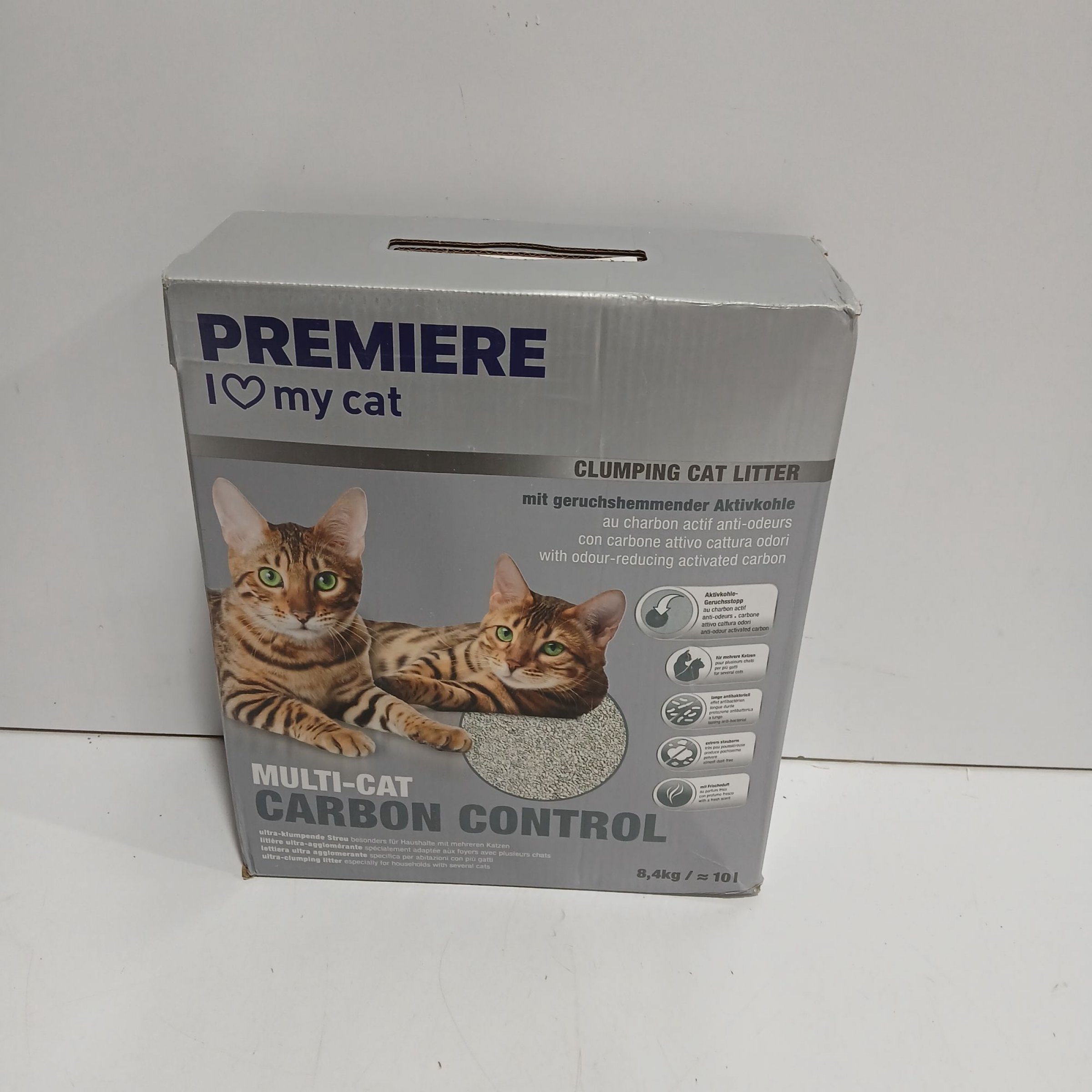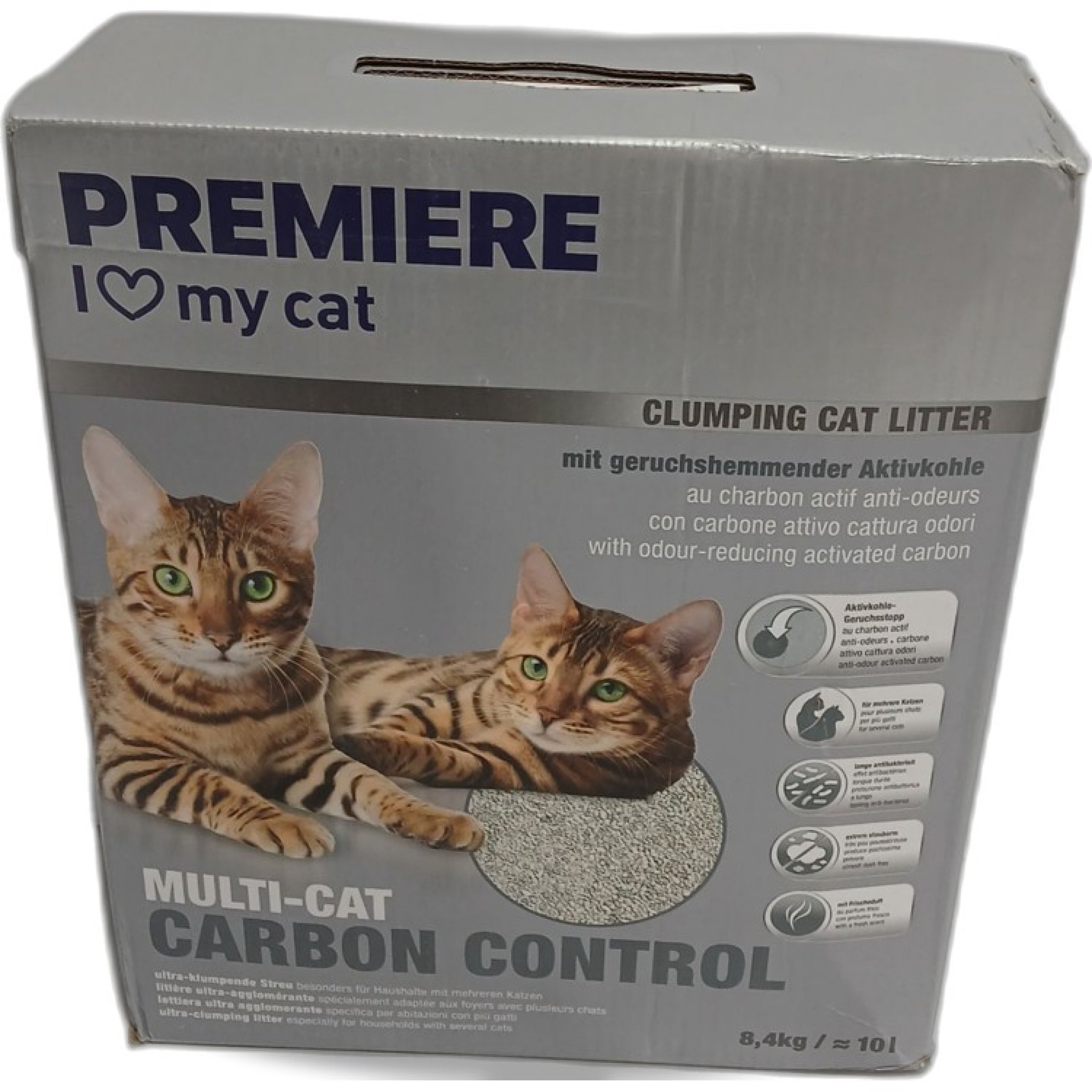 1 Packung Premiere Clumping Cat Litter mit Aktivkohle 8,4Kg