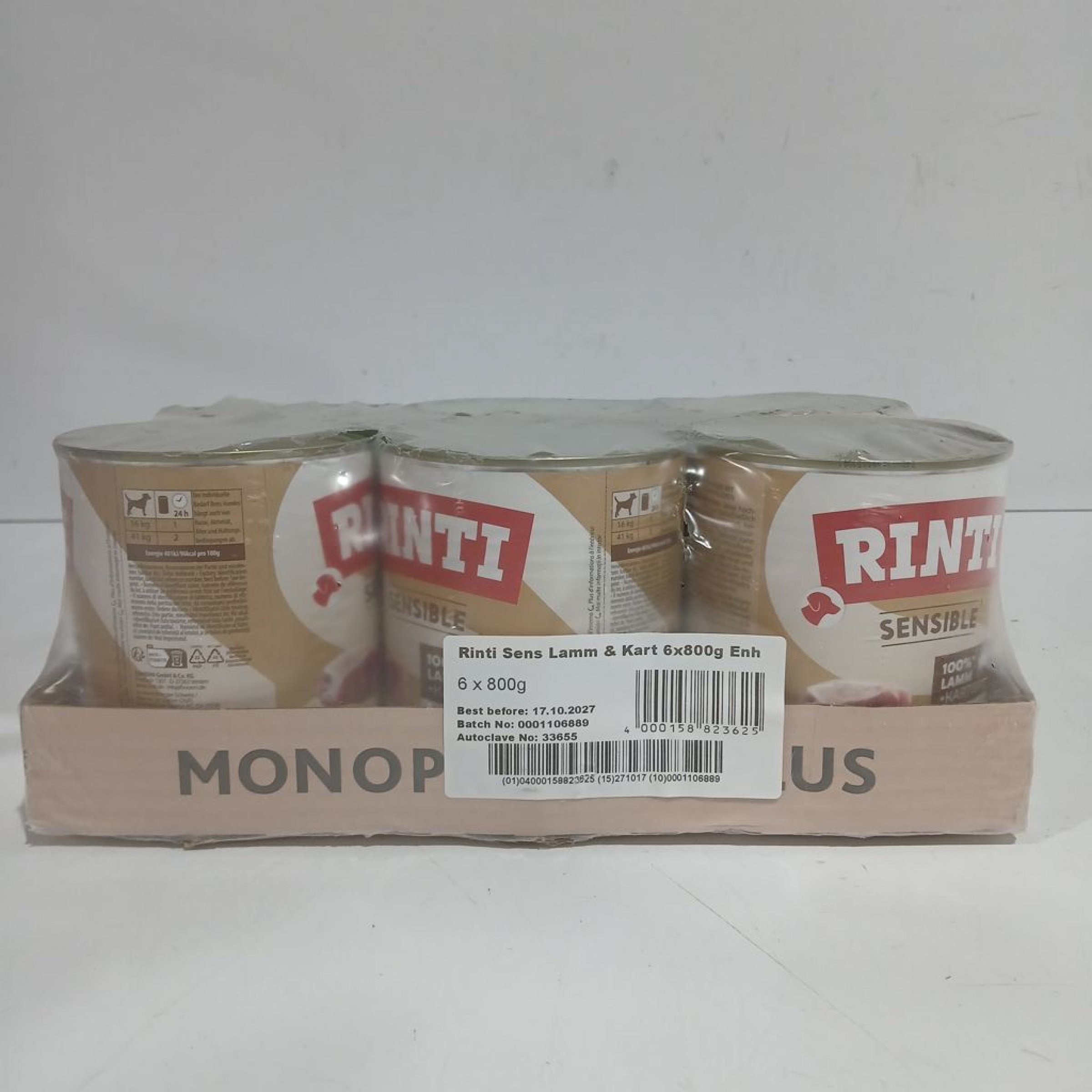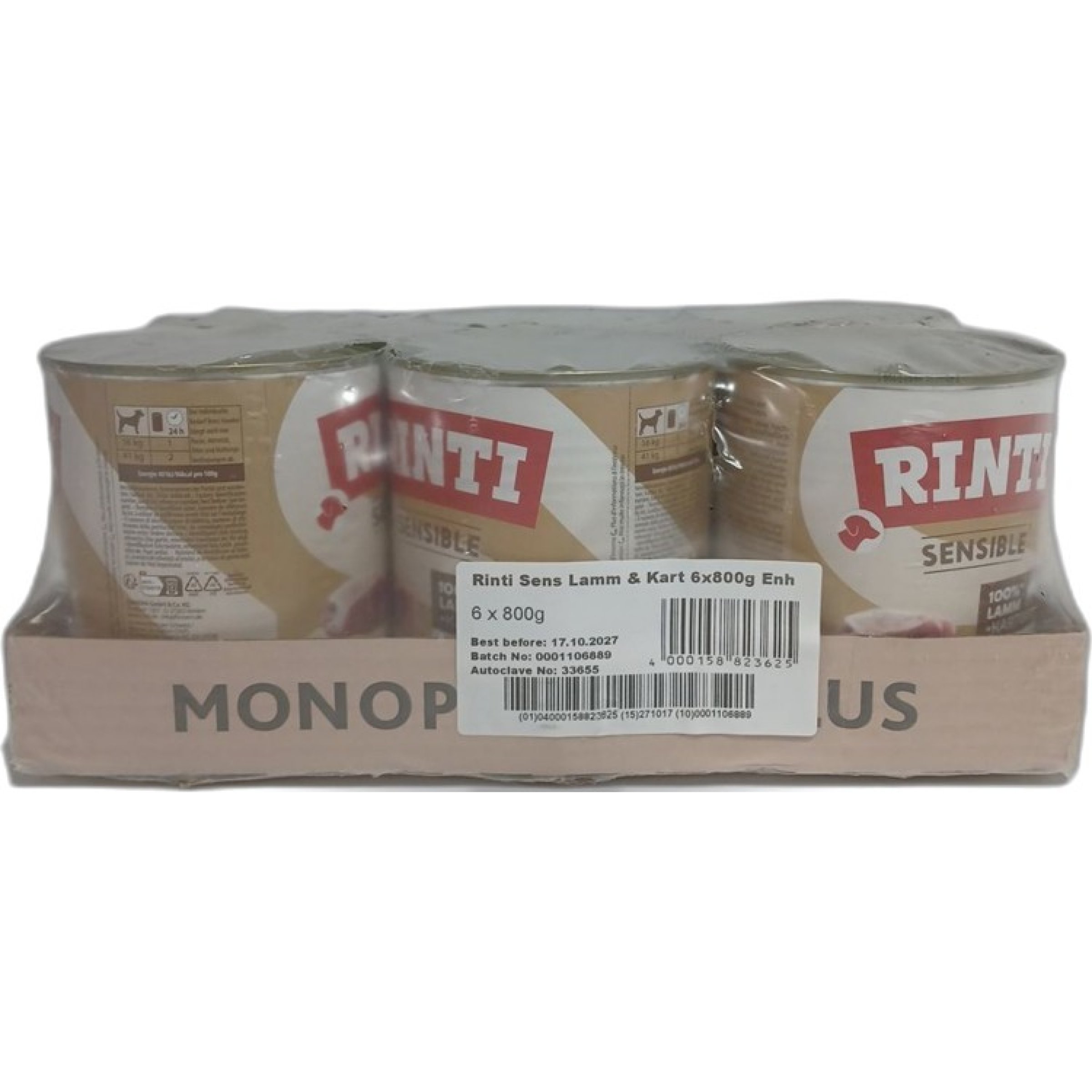 1 Packung Rinti Sensible Lamm & Kartoffel 6x800 g