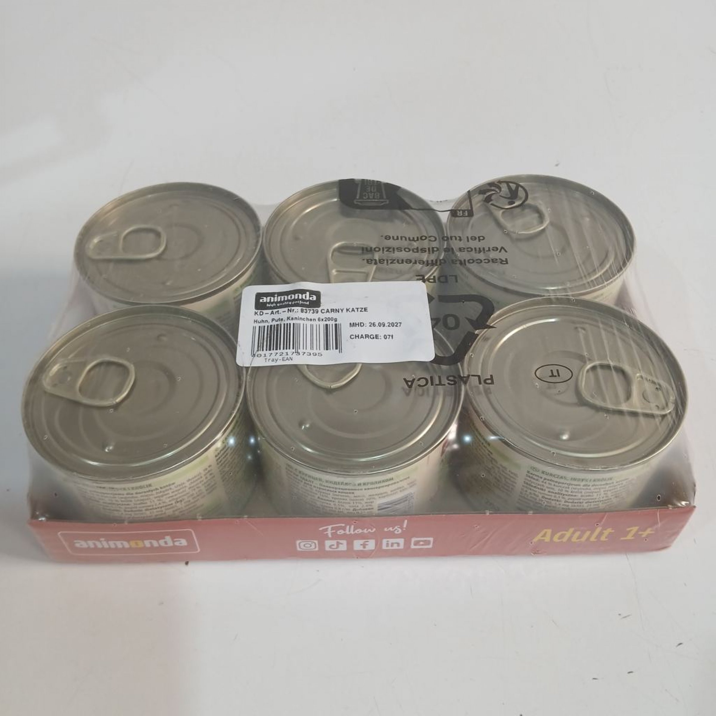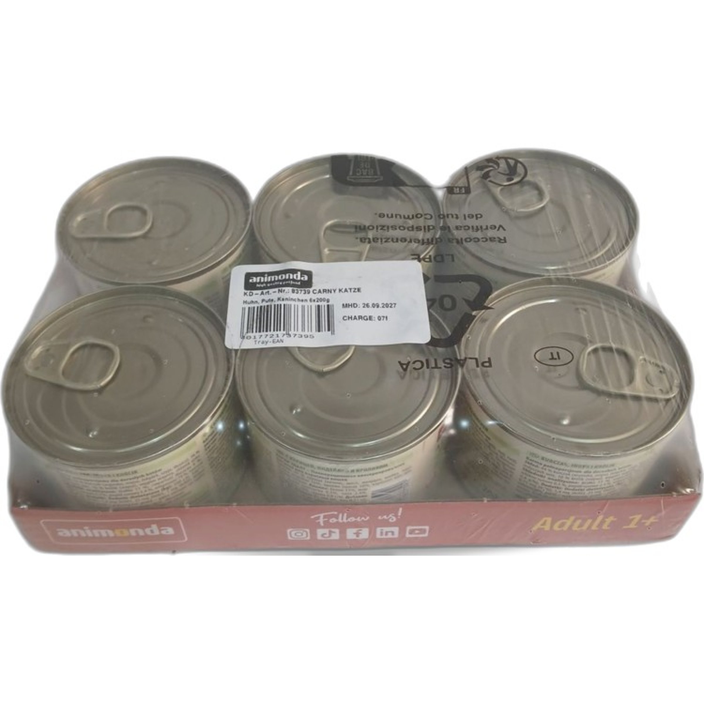 1 Packung animonda Adult 1+ Katzenfutter Huhn, Pute, Kaninchen 6x200 g