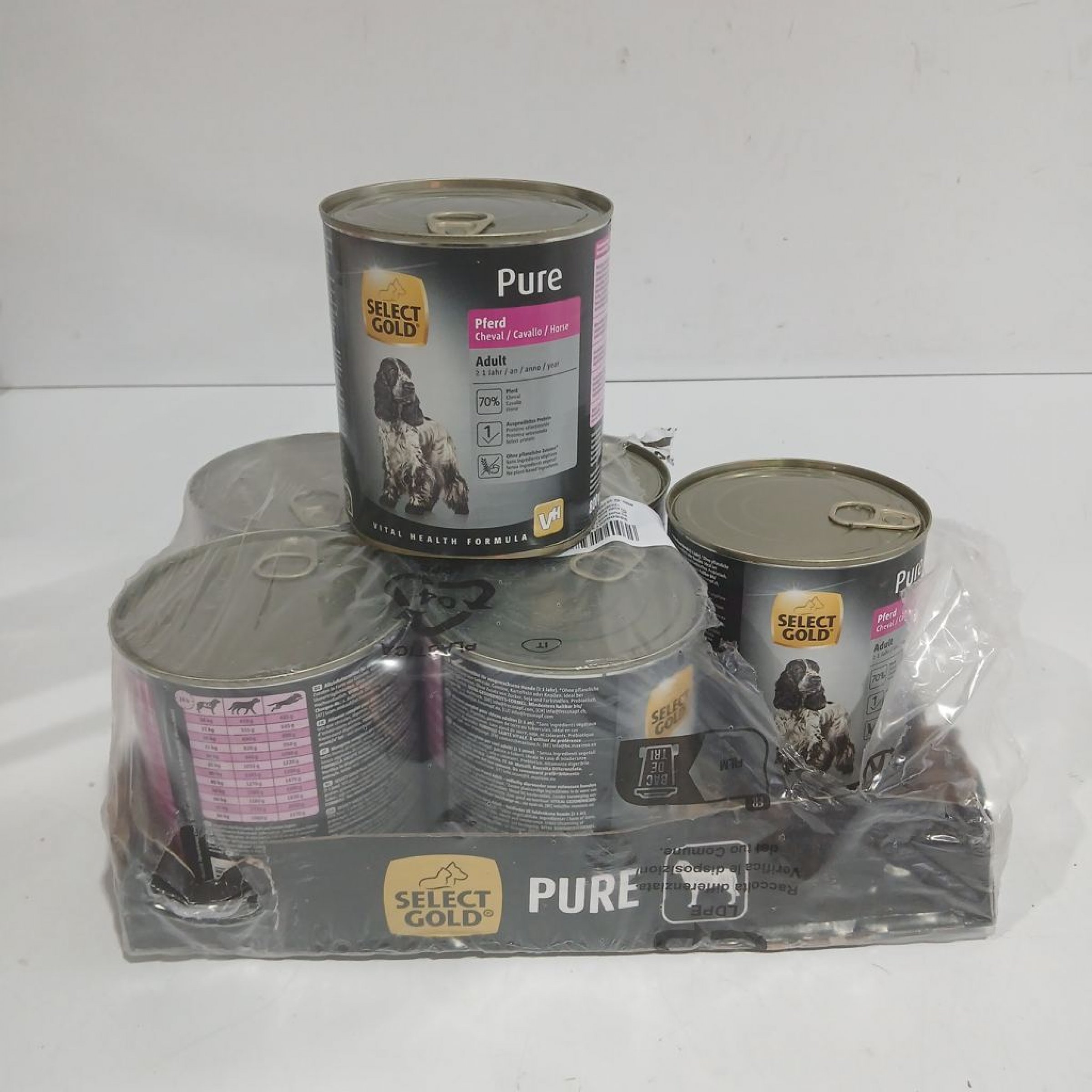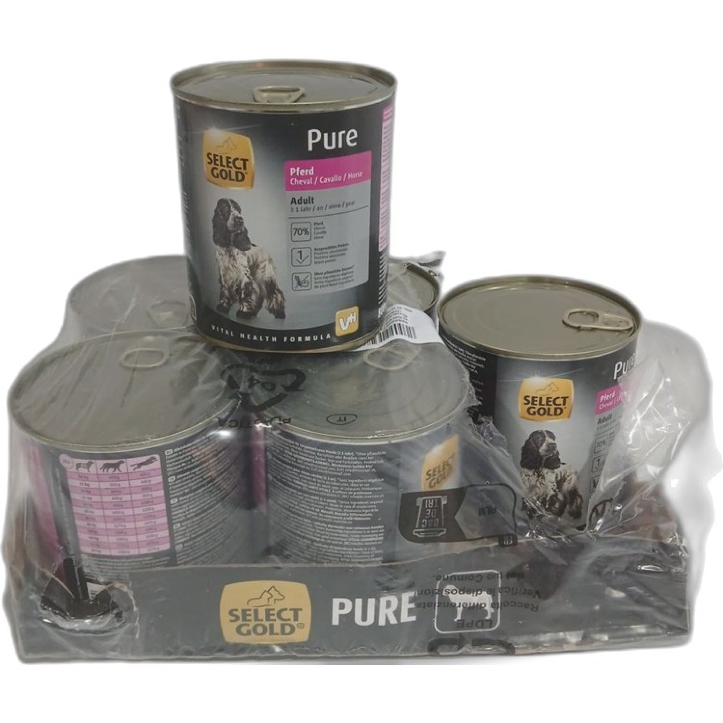 1 Packung SELECT GOLD Pure Hundefutter Adult Pferd 6x800g