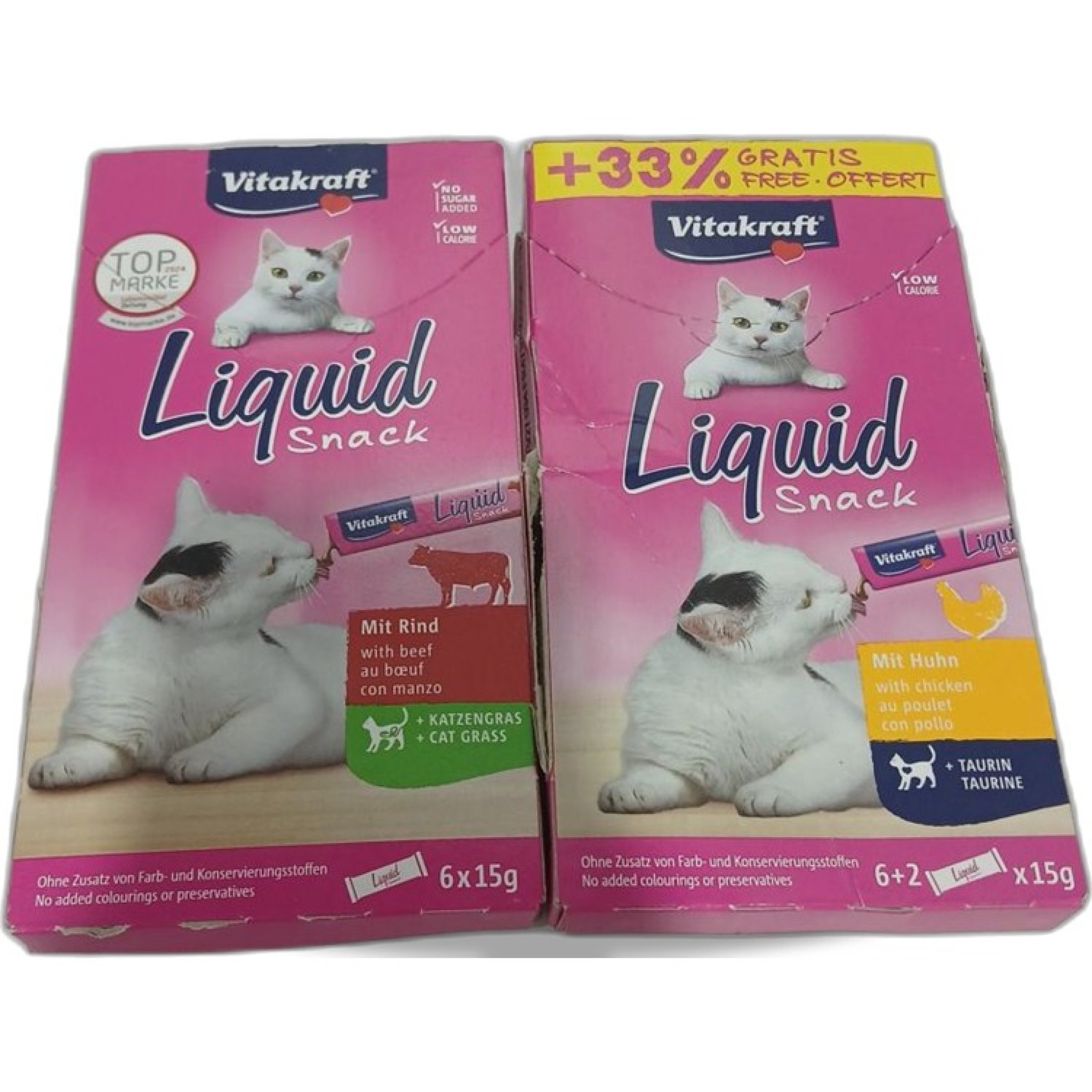 1 Set Vitakraft Liquid Snack Katzenfutter Rind 6x15 g und 8x15g