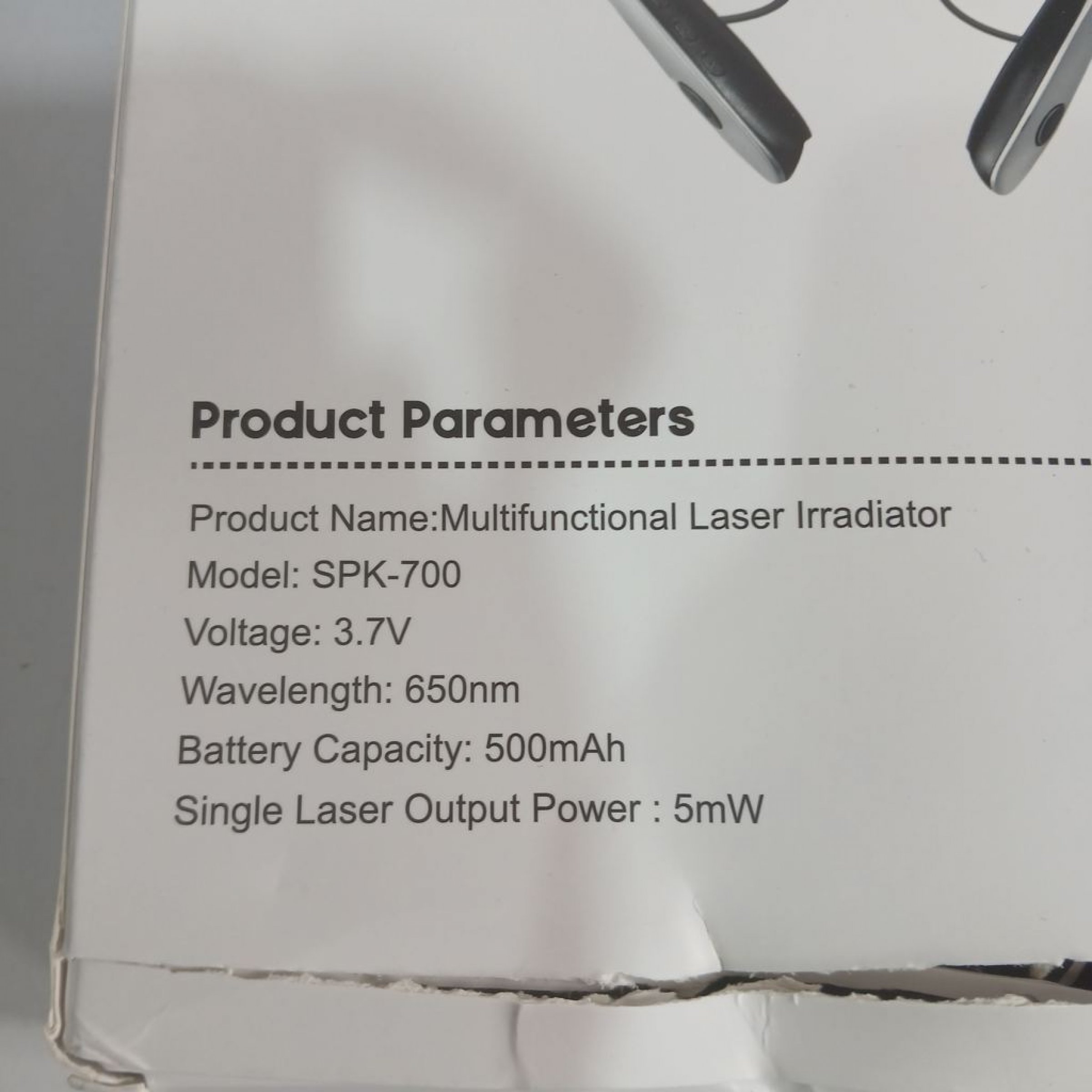 Modell: SPK-700. Spannung: 3.7V. Wellenlänge: 650 nm. Batteriekapazität: 500 mAh. Einzelne Laser-Ausgangsleistung: 5 mW