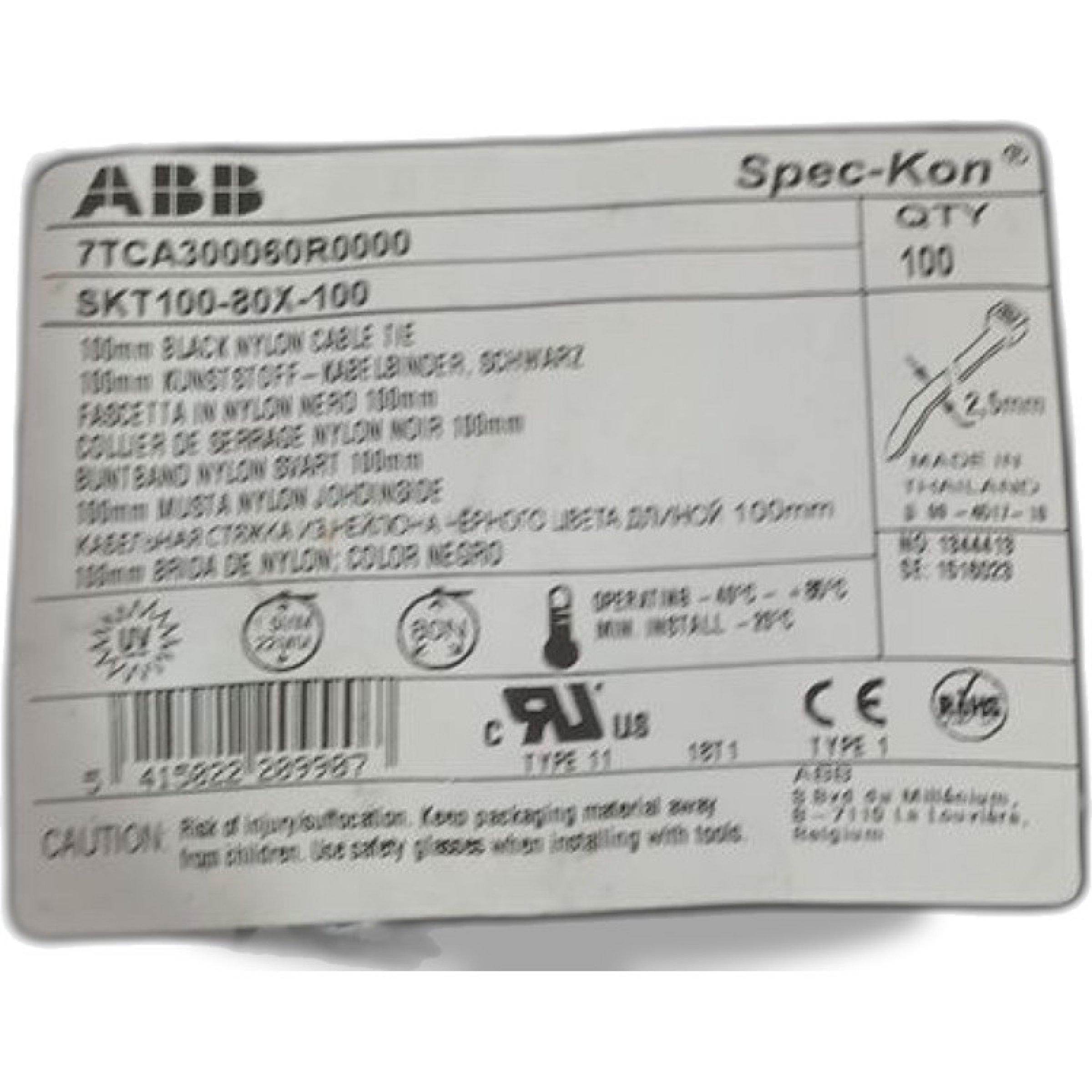 1 Packung ABB Kabelbinder SKT 150x2,5 mm schwarz 100 Stück
