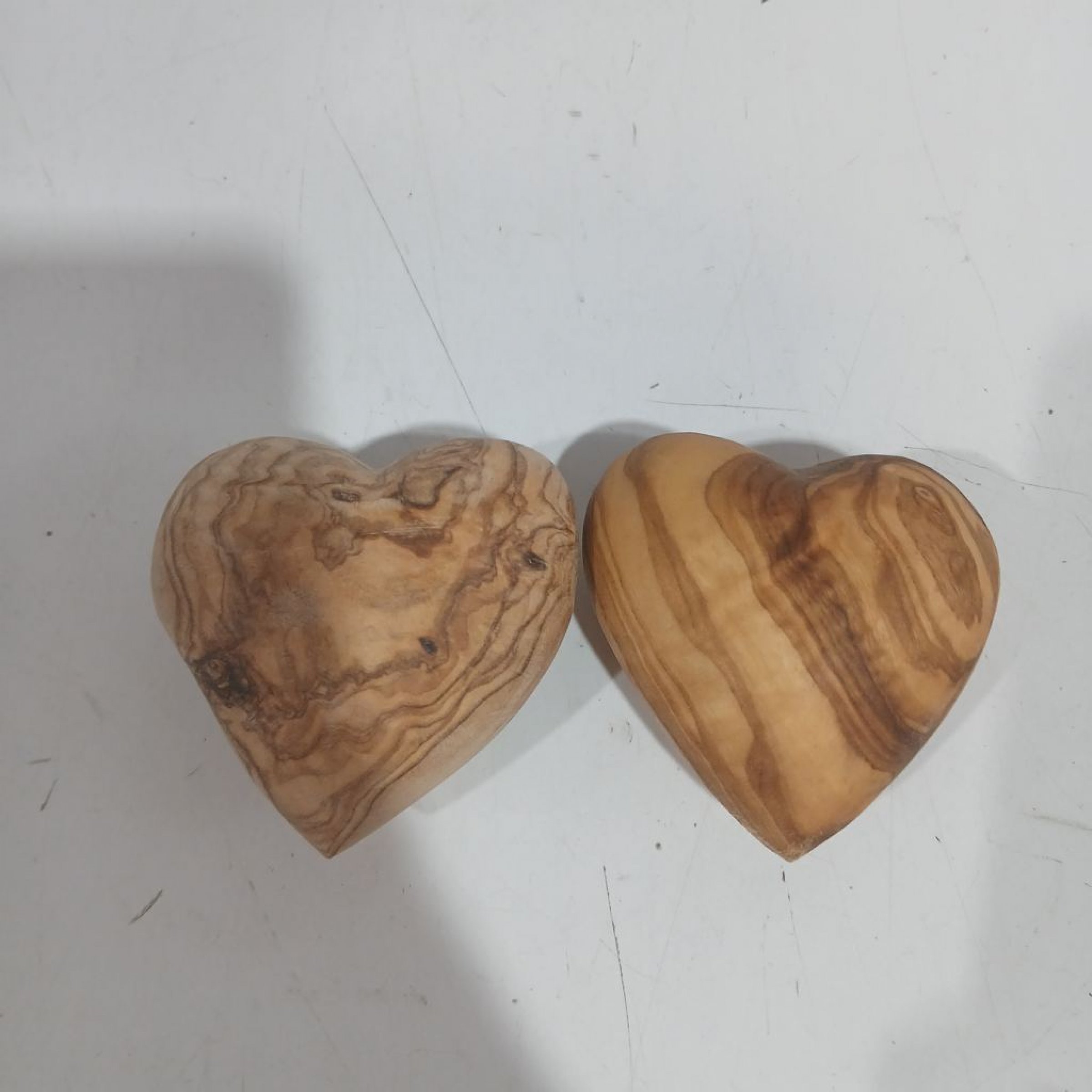 Zwei Holzherzen aus Olivenholz