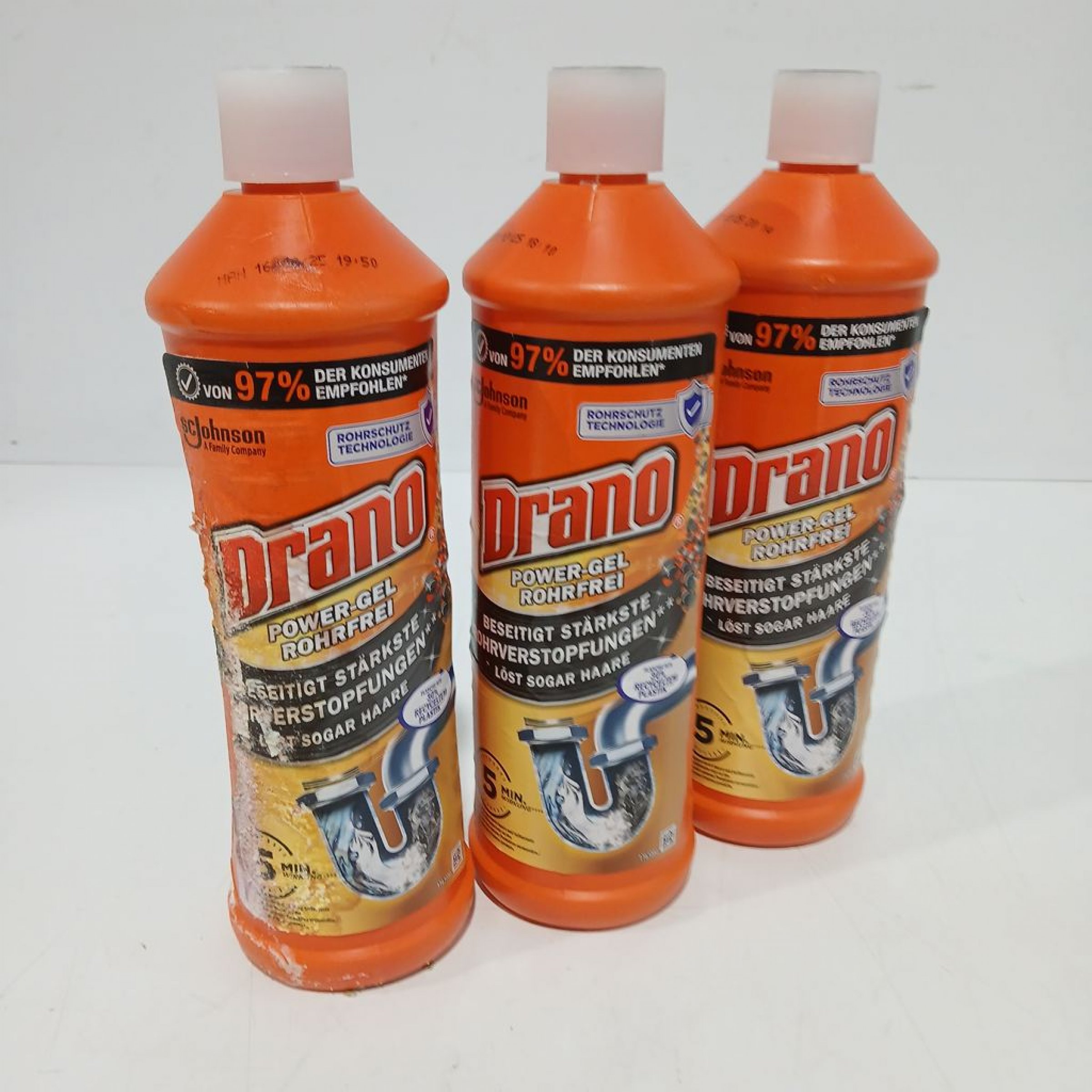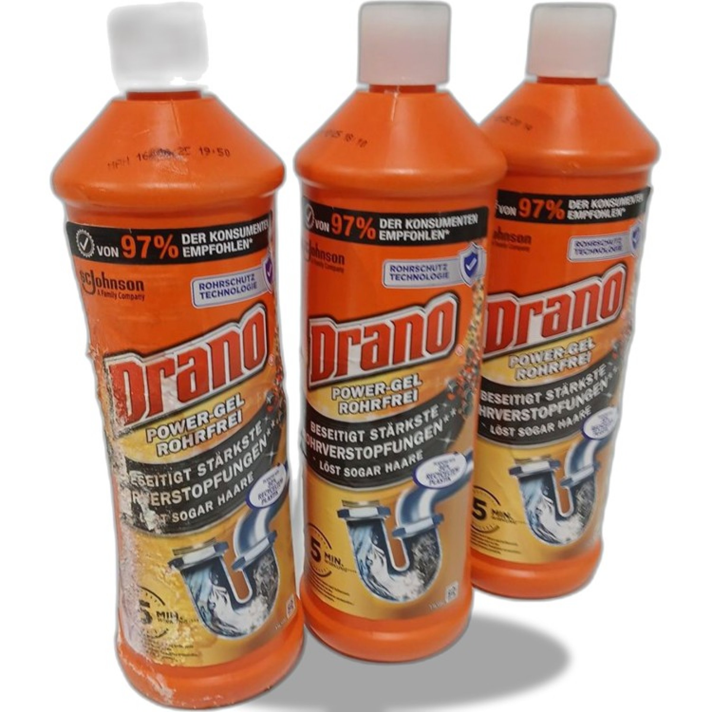 1 Set Drano Power-Gel Rohrreiniger 3x1 l