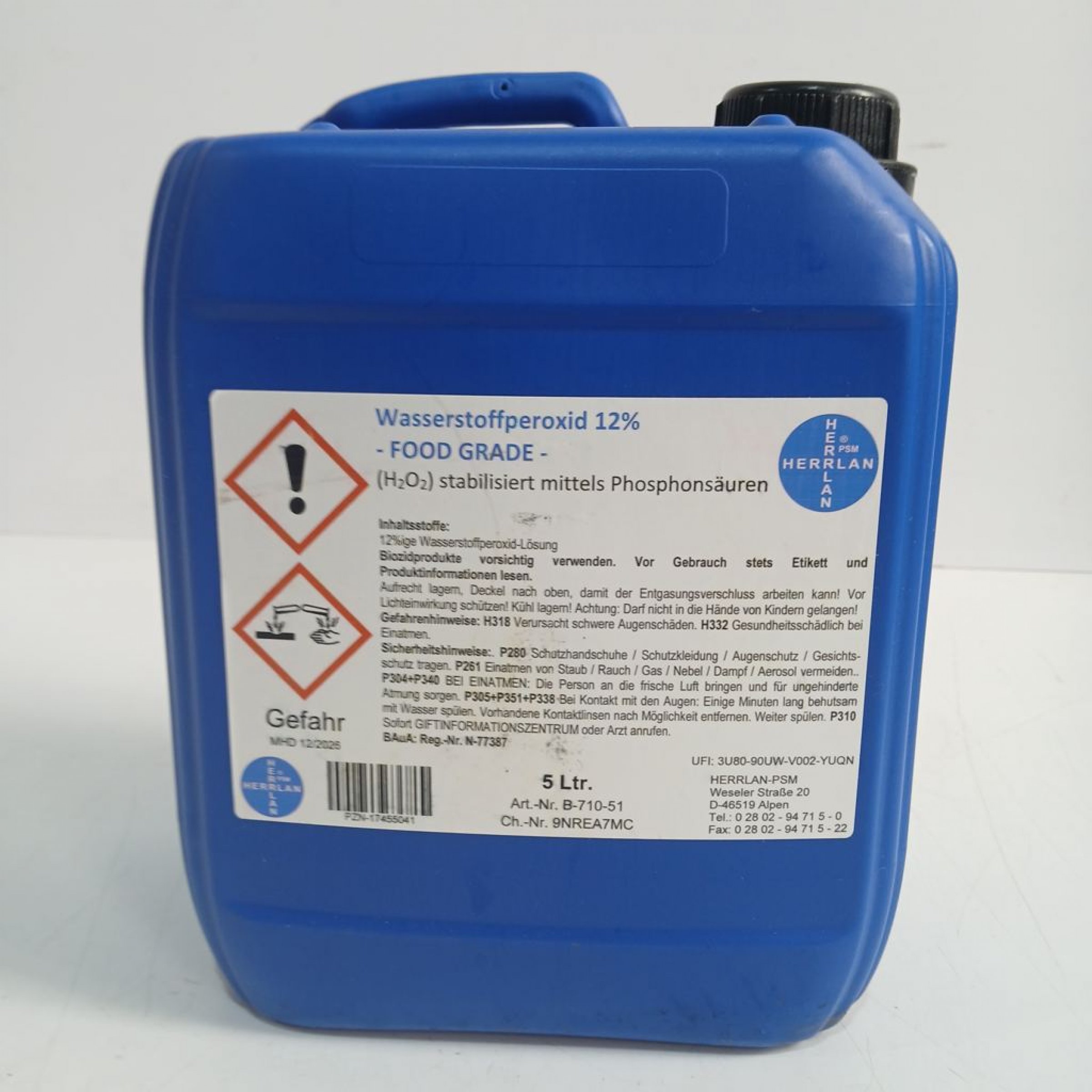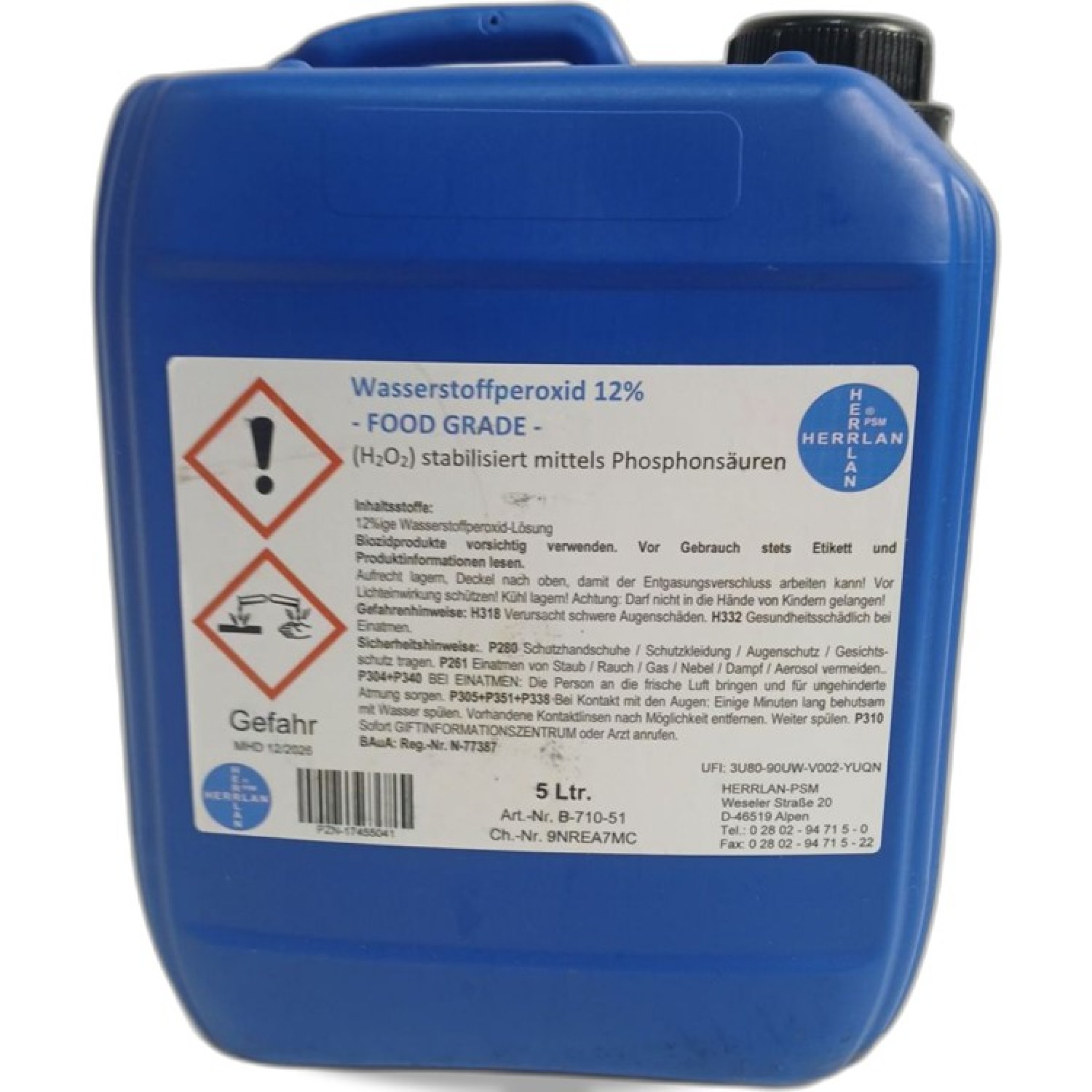 Artikel Nr. 953386: Herrlan Wasserstoffperoxid 12% Food Grade 5 lArtikel Nr. 953386: Herrlan Wasserstoffperoxid 12% Food Grade 5 l