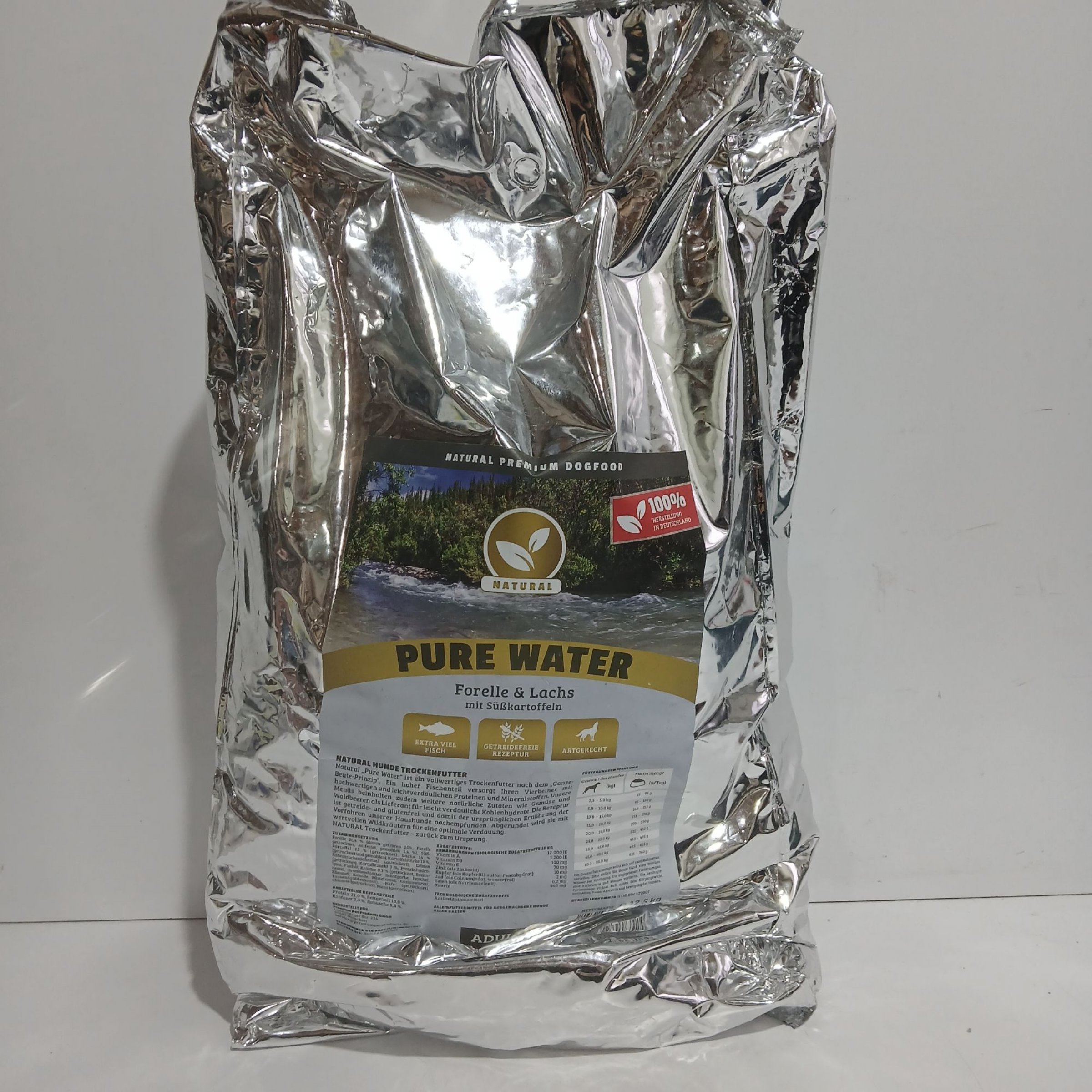 1 Stk. Pure Water Hundefutter Forelle & Lachs mit Süßkartoffeln 12,5kg
