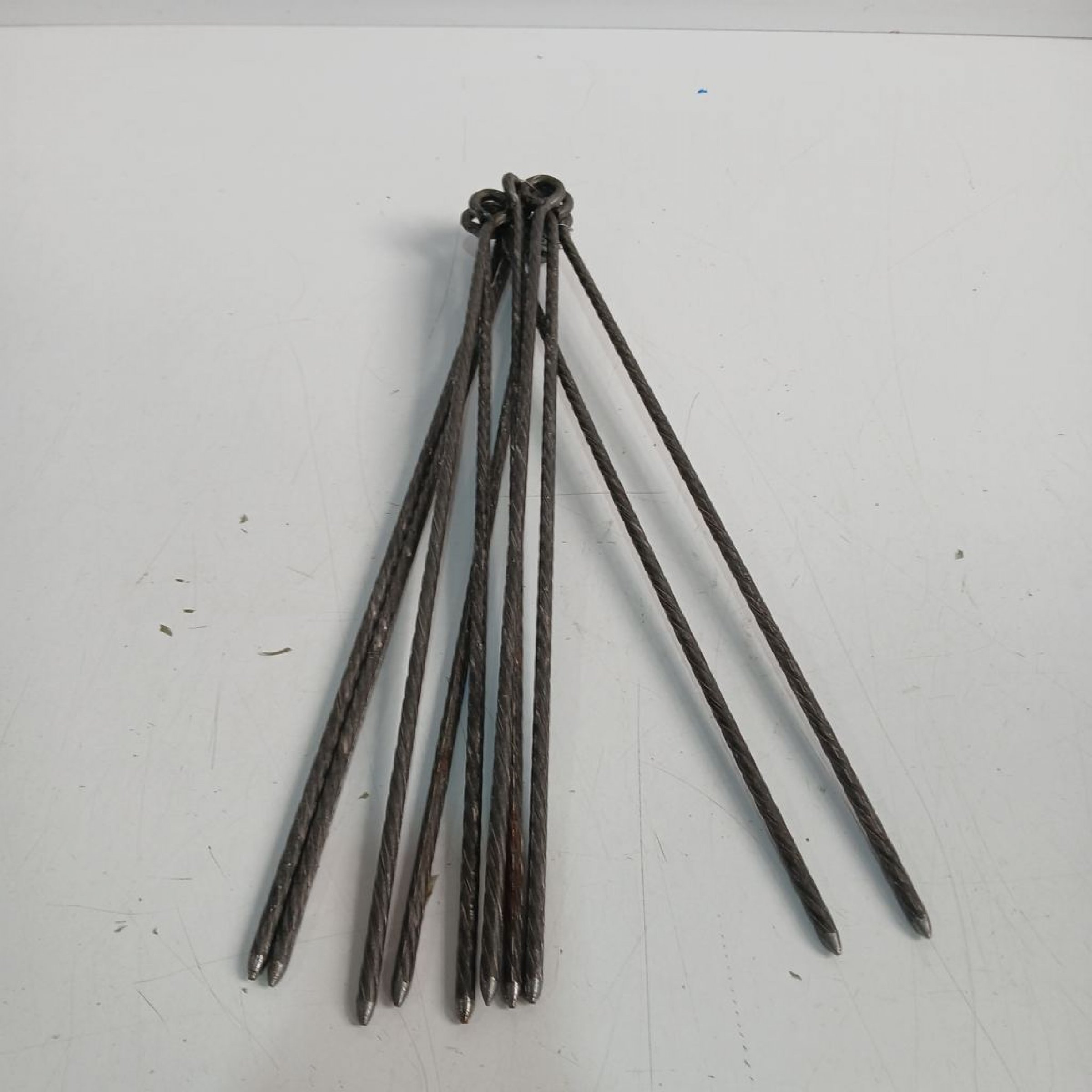 Sechs Zeltspitzen aus Metall. Ca. 44cm