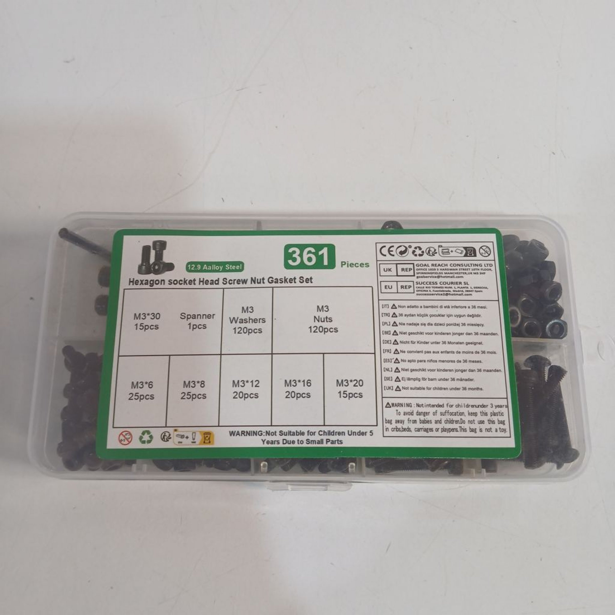 1 Stk. Hexagon socket Head Screw Nut Gasket Set 361 Pieces