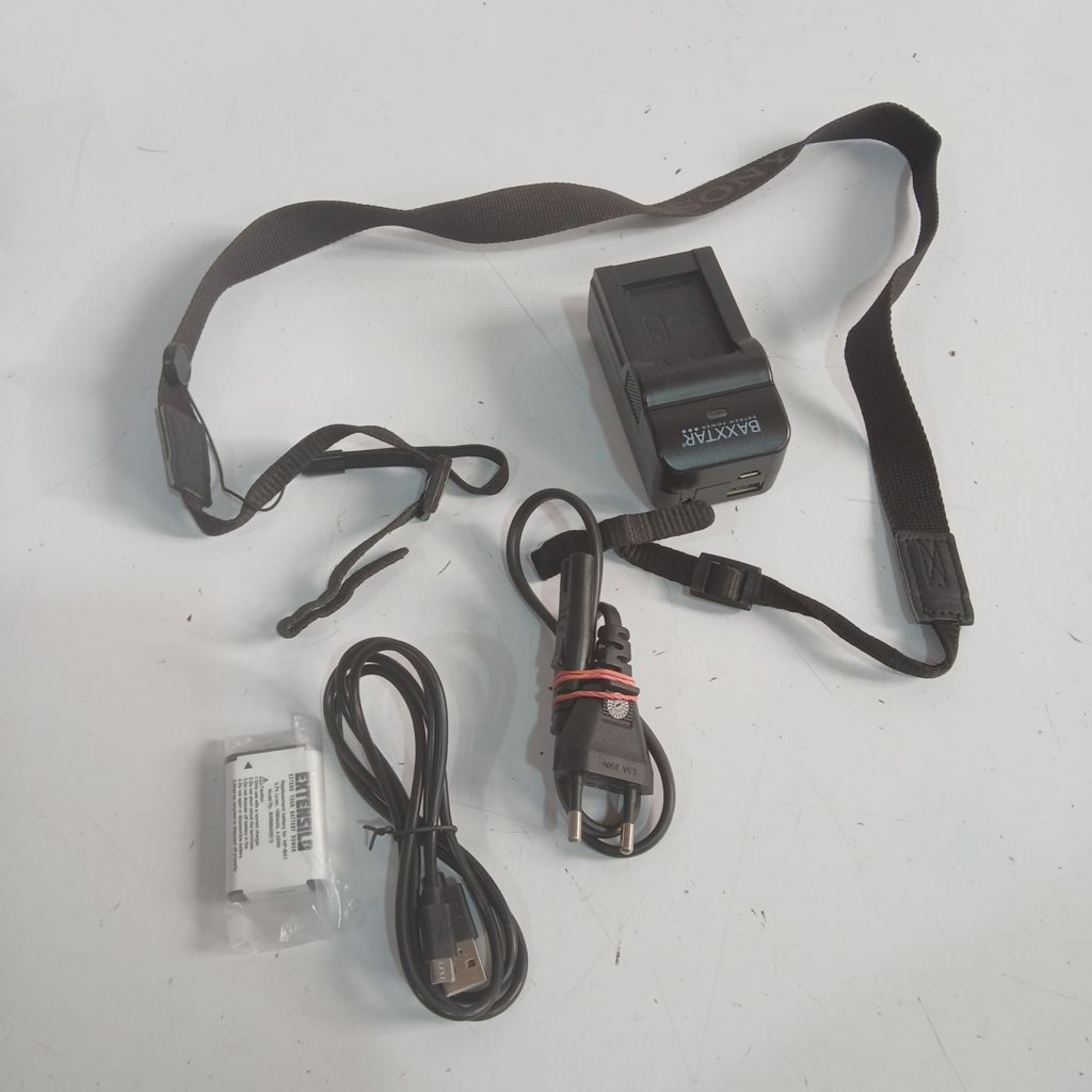 Inklusive USB-Kabel, Tragegurt und Akku