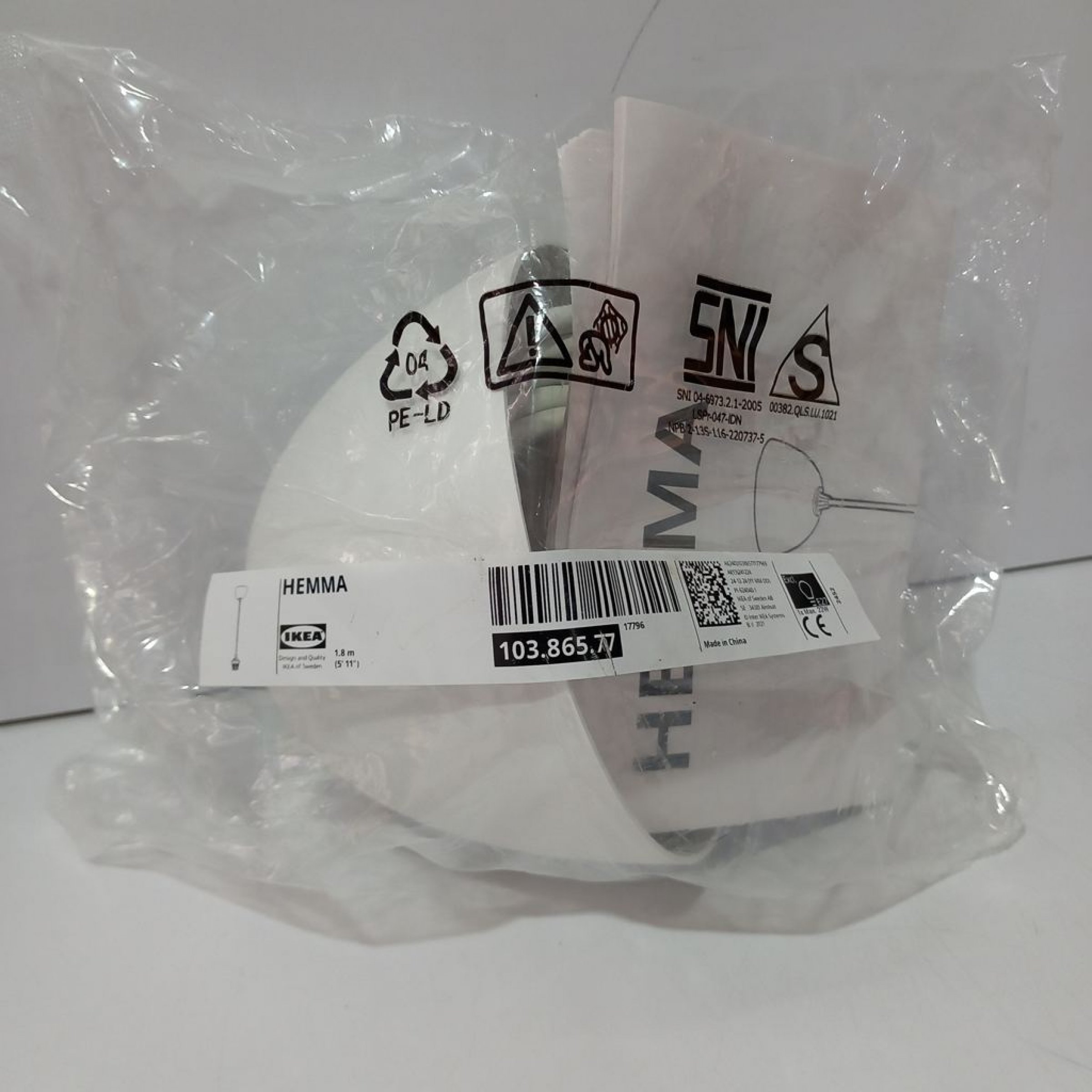 1 Stk. IKEA HEMMA Lampe, 1,8m Kabel, 12,5cm Durchmesser, weiß