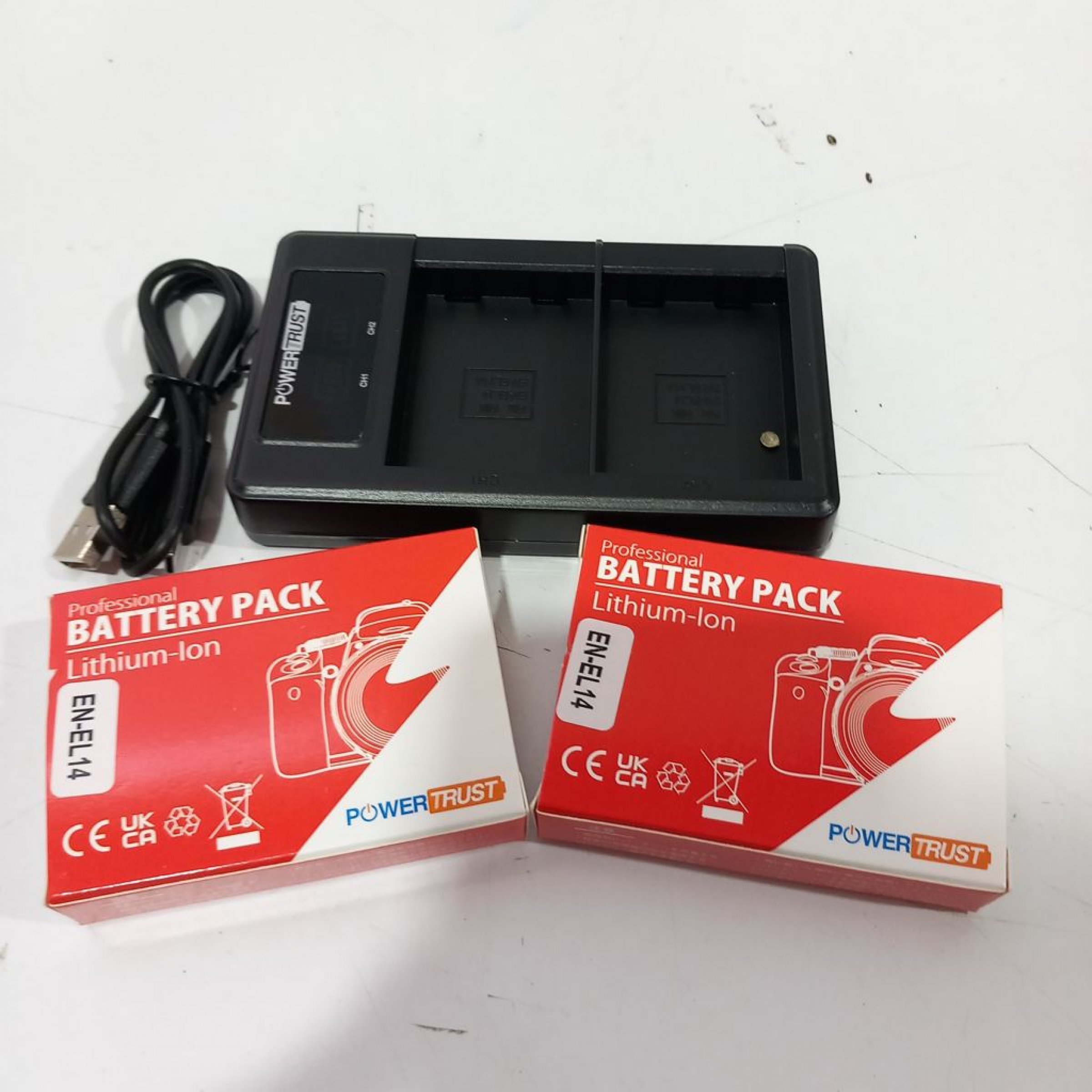 Lieferumfang: 2x Lithium-Ionen-Akkus ENE14-1 und Ladegerät