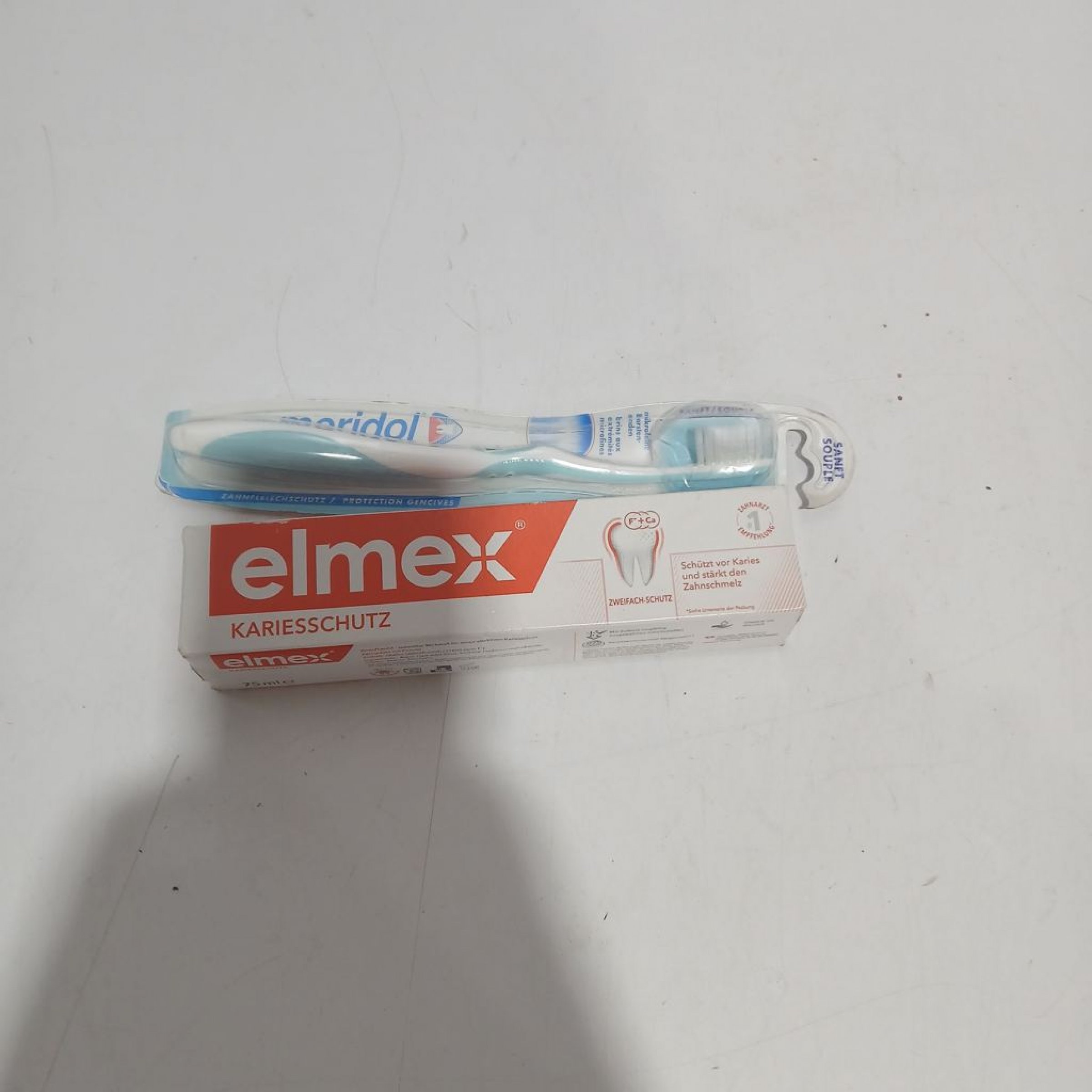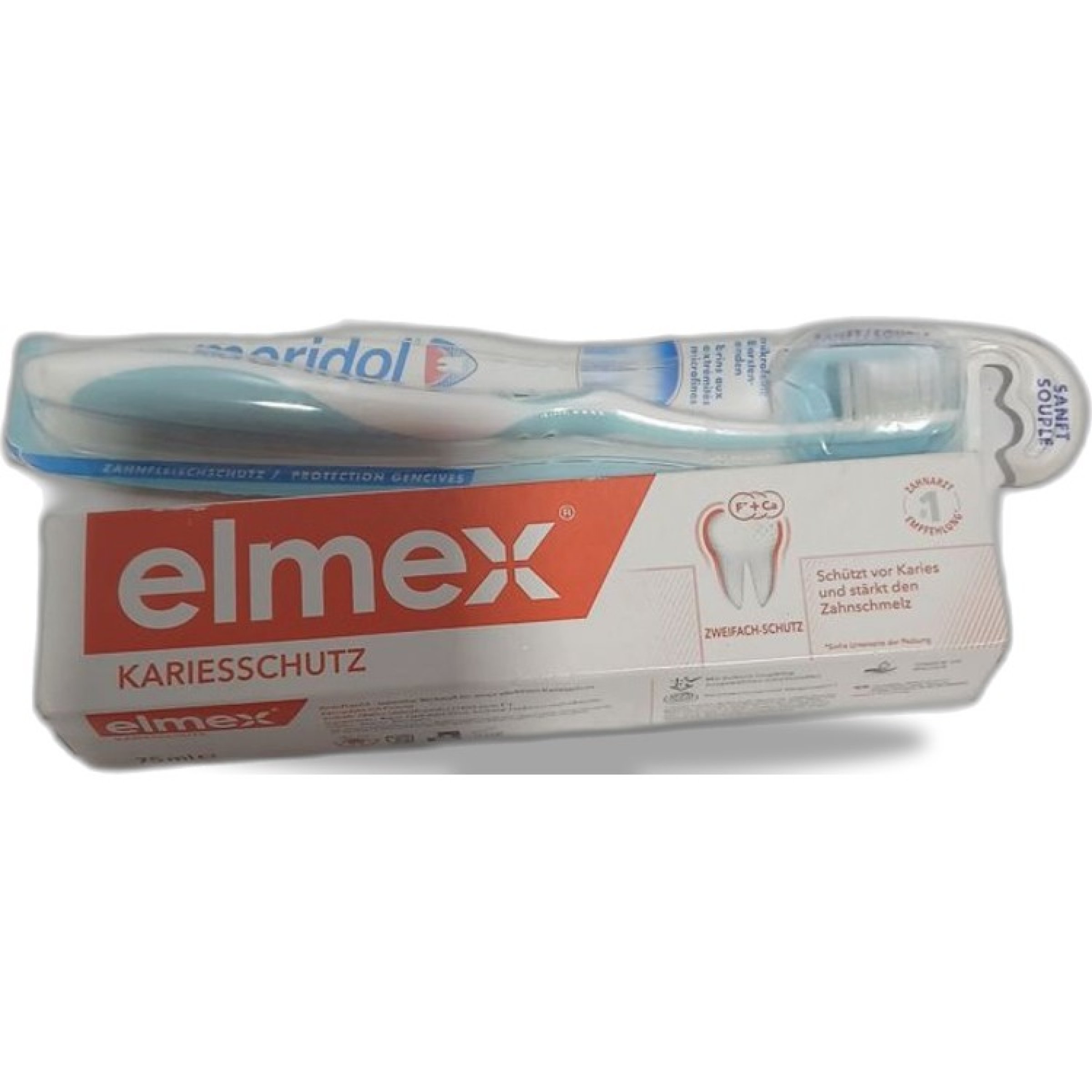 1 Set elmex Kariesschutz Zahnpasta und Meridol Zahnbürste