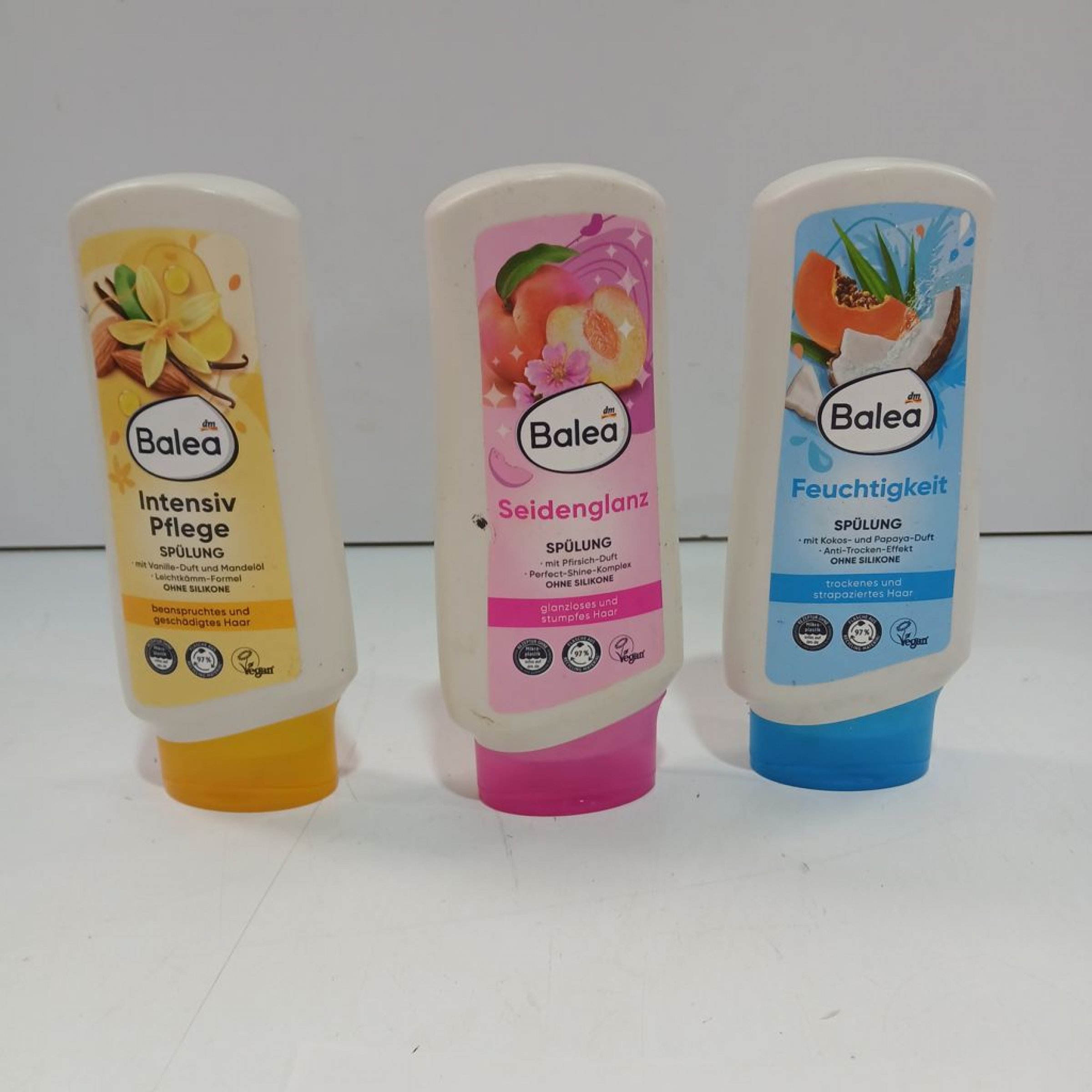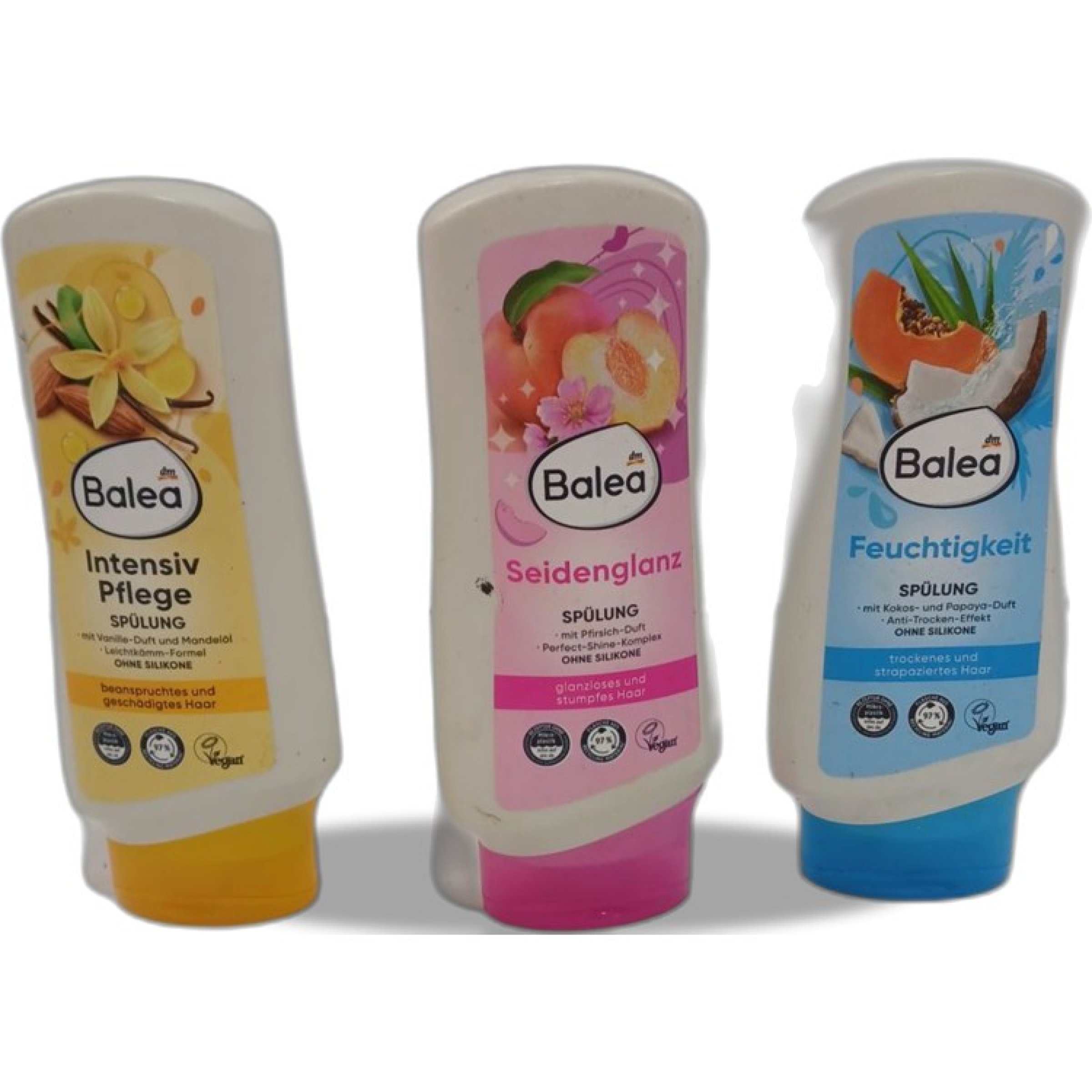 1 Set Div.sorten Balea Intensiv Pflege Spülung, Balea Seidenglanz Spülung, Balea Feuchtigkeit Spülung 3x 300ml