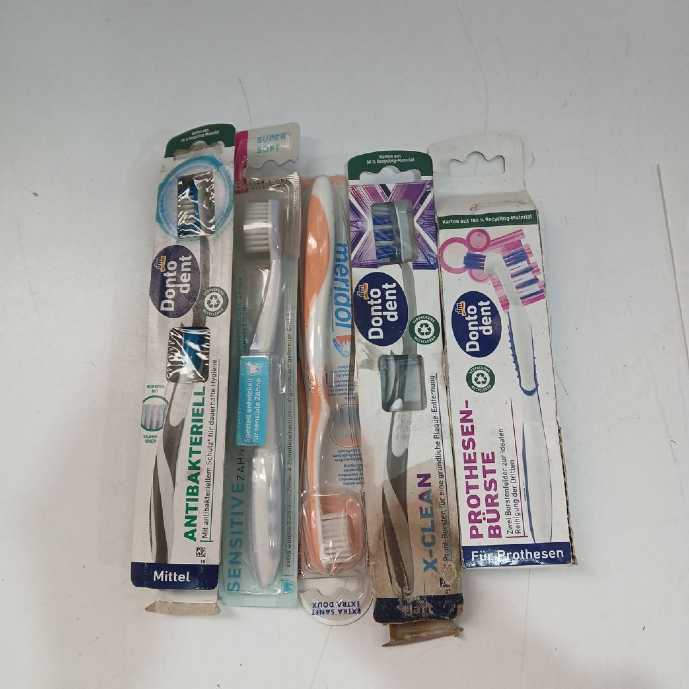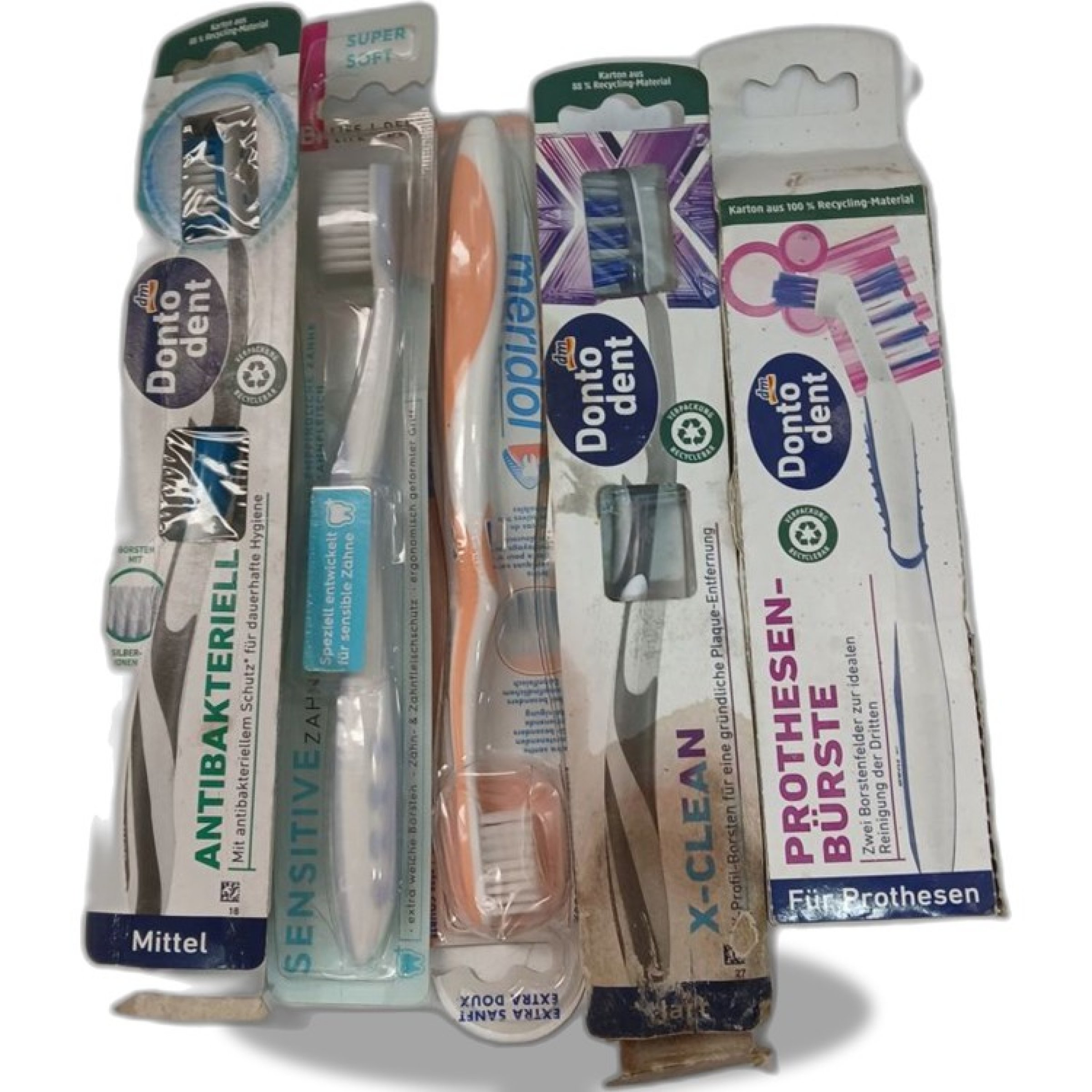 1 Set Div. Sorten Dontodent Zahnbürste Antibakteriell, Sensitive, Prothesenbürste 5 stk