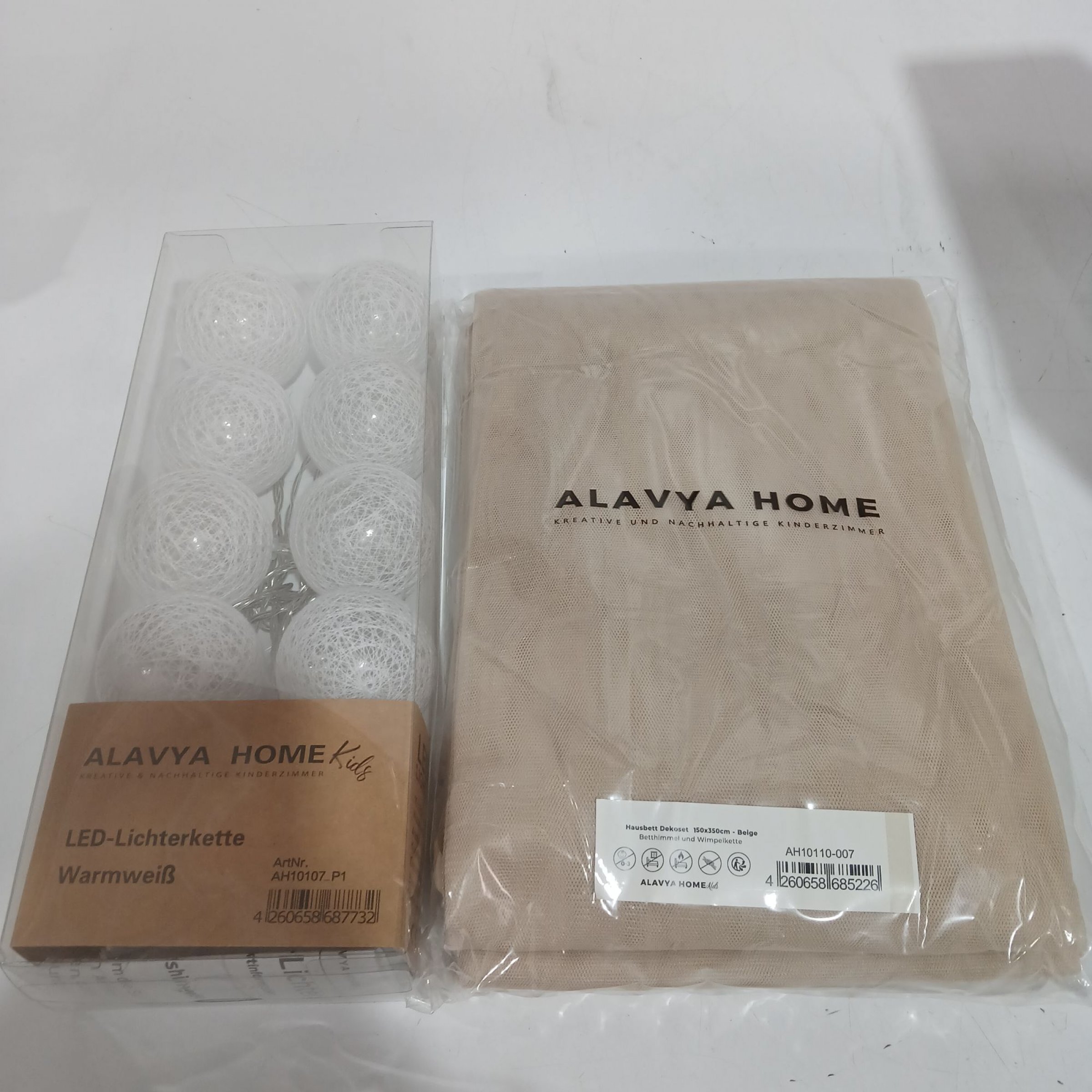1 Stk. Alavya Home Hausbett Dekoset 150x350cm beige Betthimmel & Wimpelkette + LED Lichterkette warmweiß