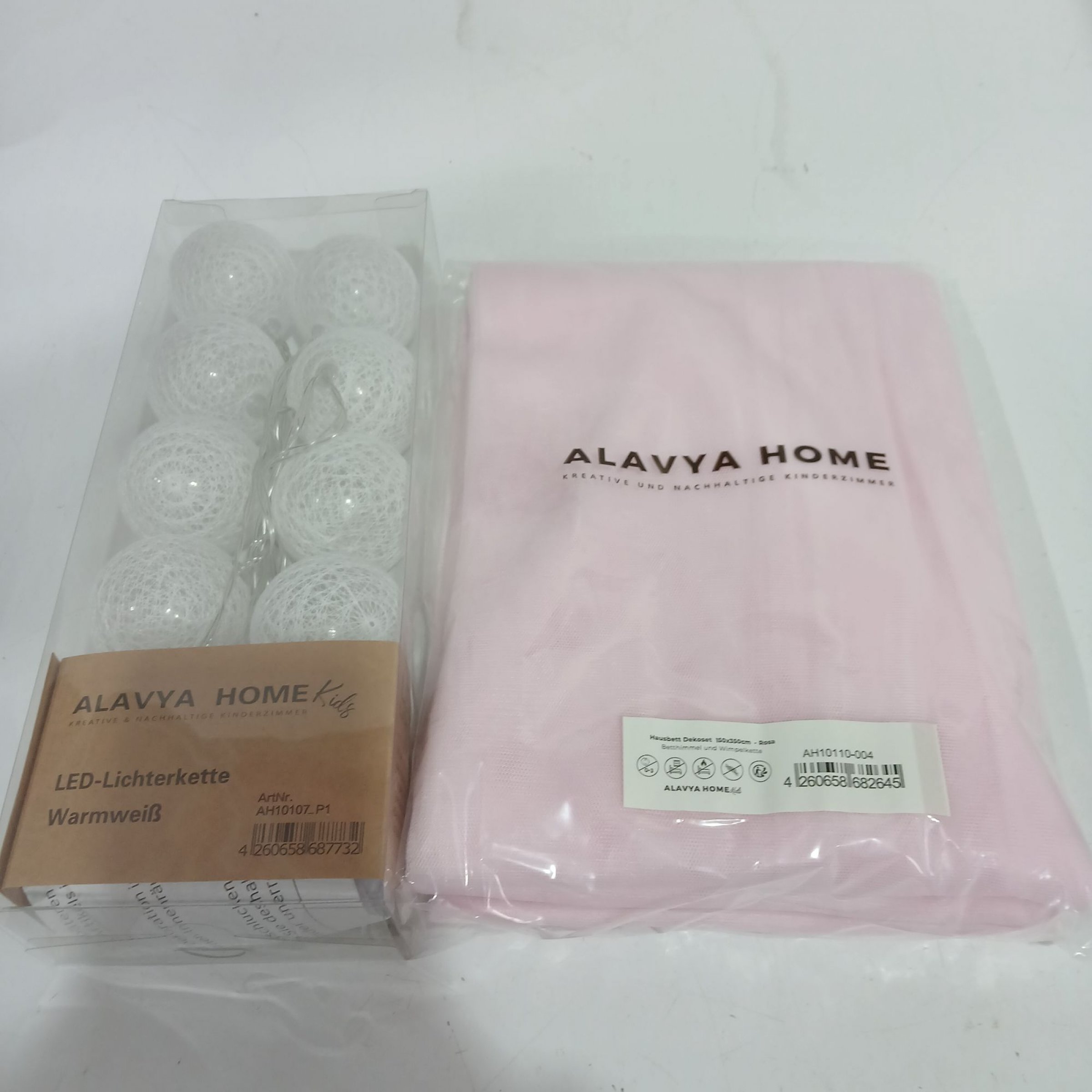1 Stk. Alavya Home Hausbett Dekoset 150x350cm rosa Betthimmel & Wimpelkette + LED Lichterkette warmweiß