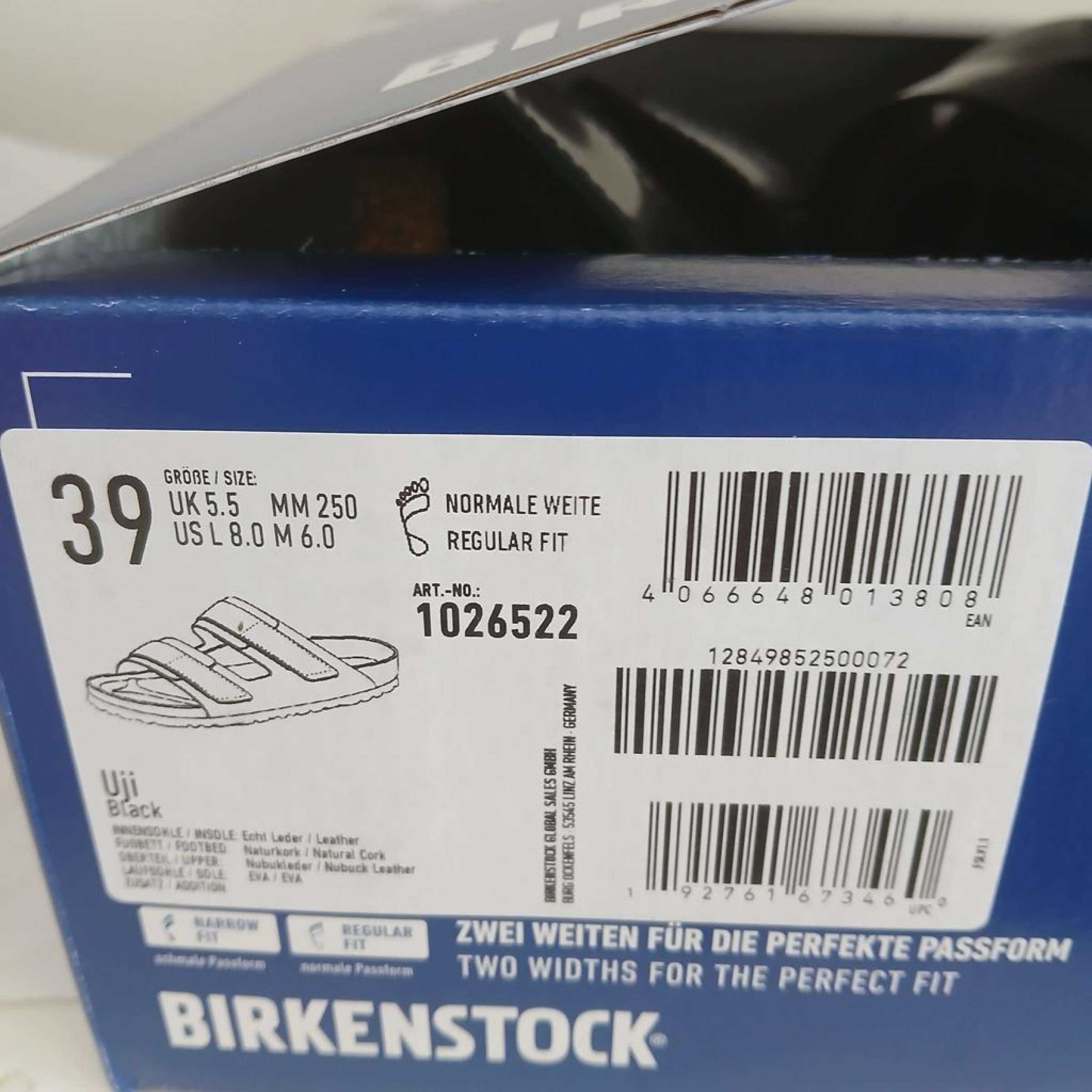 Größe: 39 (US 5.5, MM 250), normale Weite