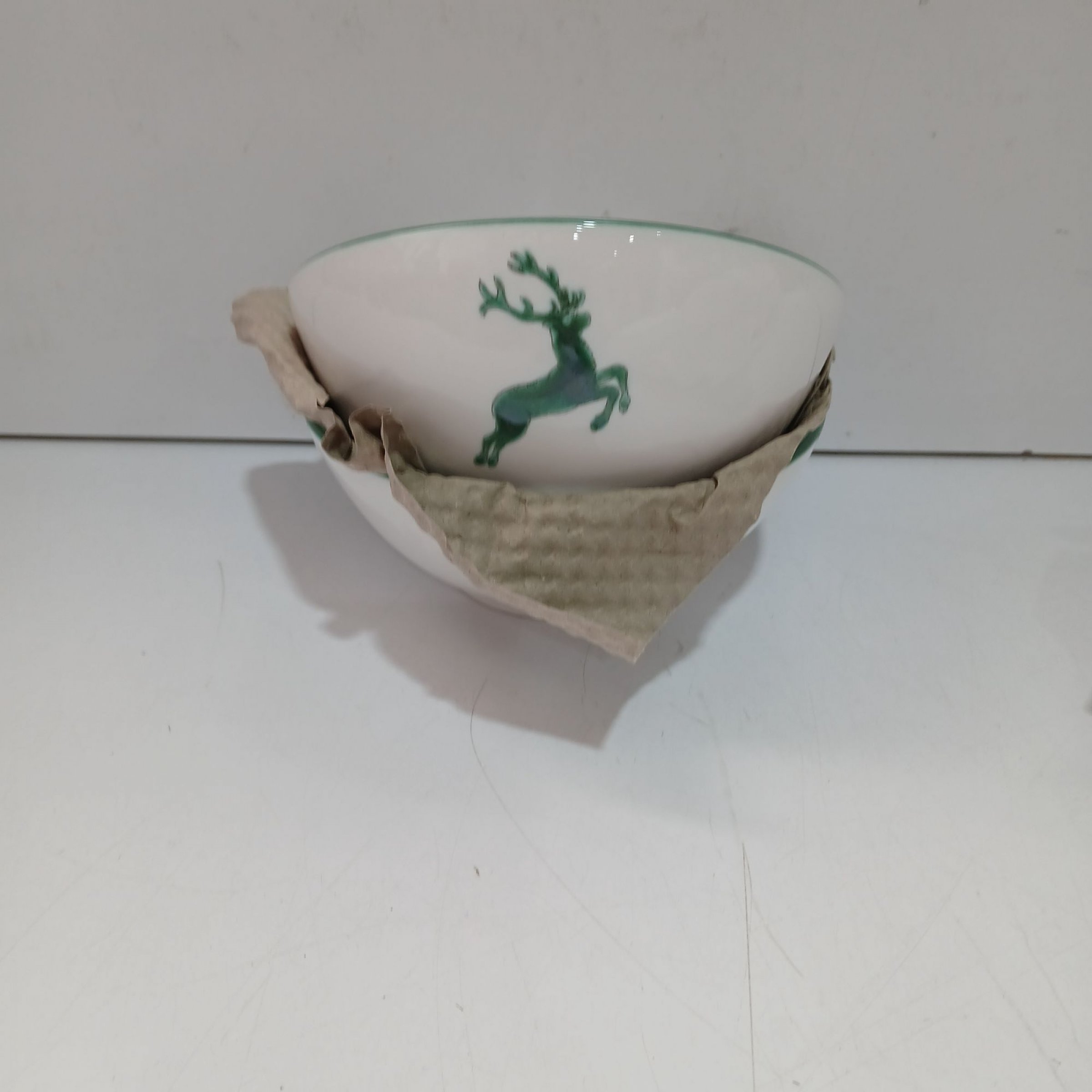 1 Set Gmundner Keramik Set 2 x Grüner Hirsch Bowl 17 cm