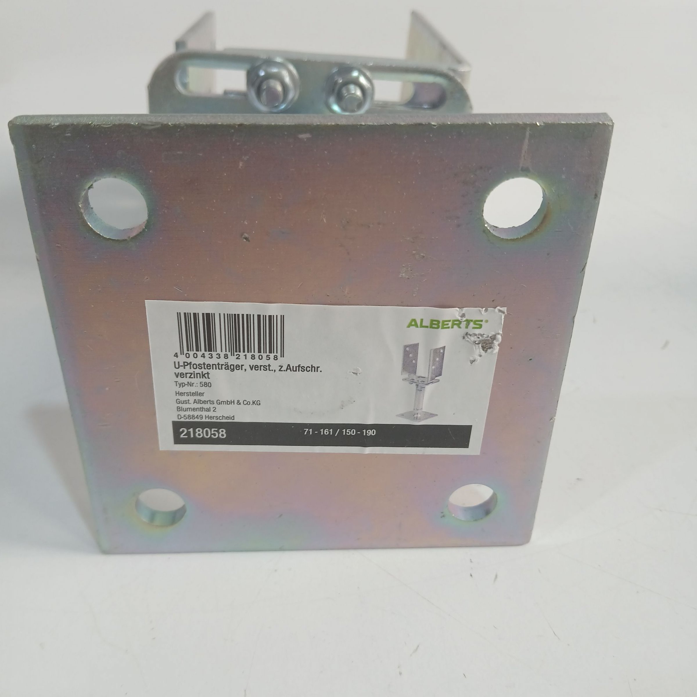 1 Stk. Alberts U-Pfostenträger verzinkt 218058