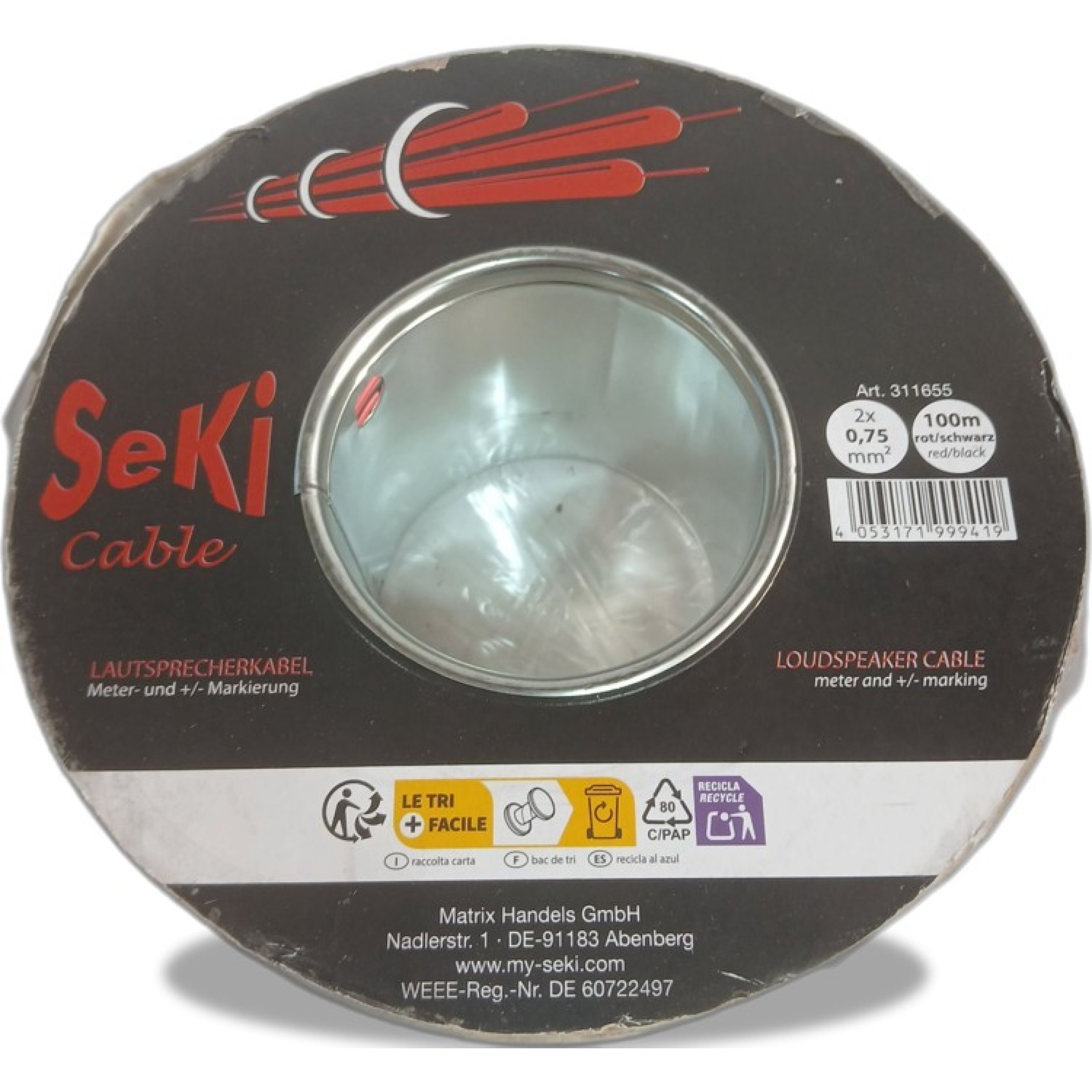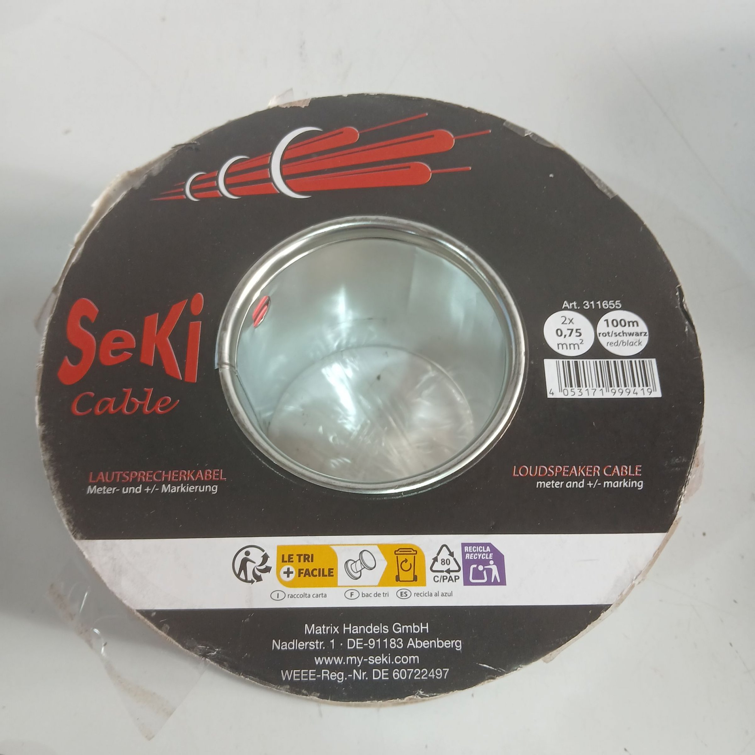 1 Stk. Lautsprecherkabel 100m schwarz/rot
