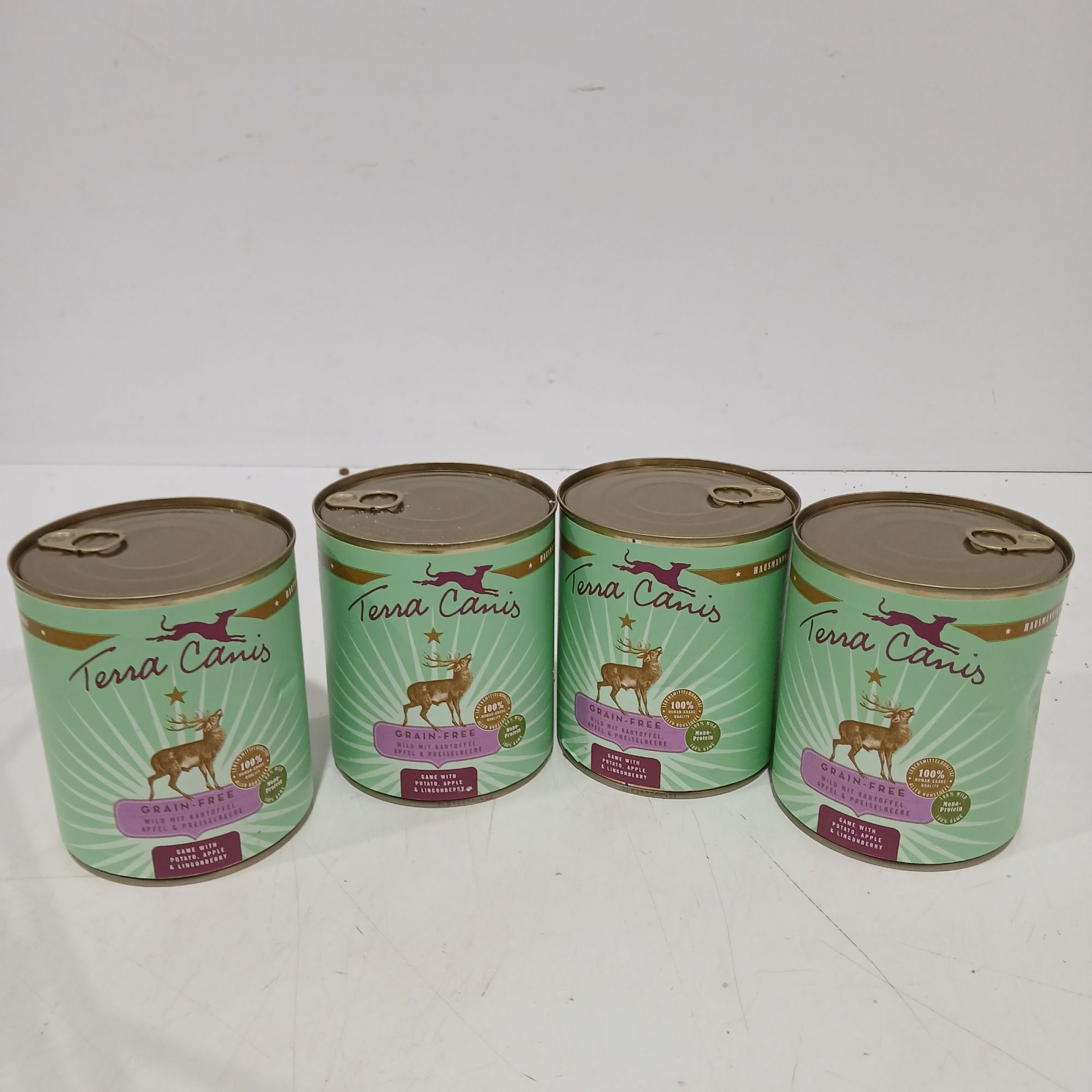 1 Packung Terra Canis Grain Free Wild mit Kartoffel Apfel und Preiselbeere 4x800g