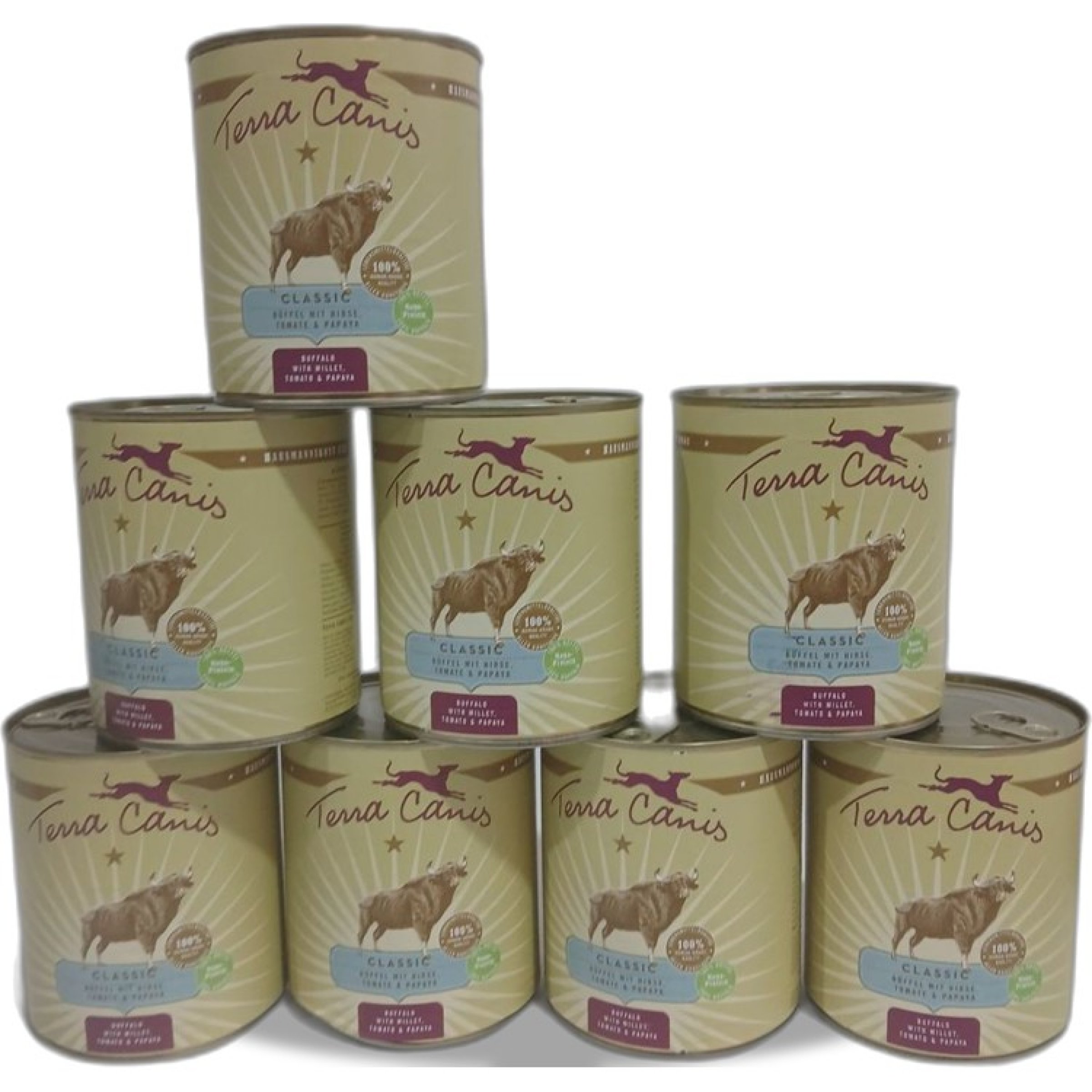 1 Packung Tera Canis Classic Hundefutter Büffel mit Hirse, Tomate & Papaya 8x800g