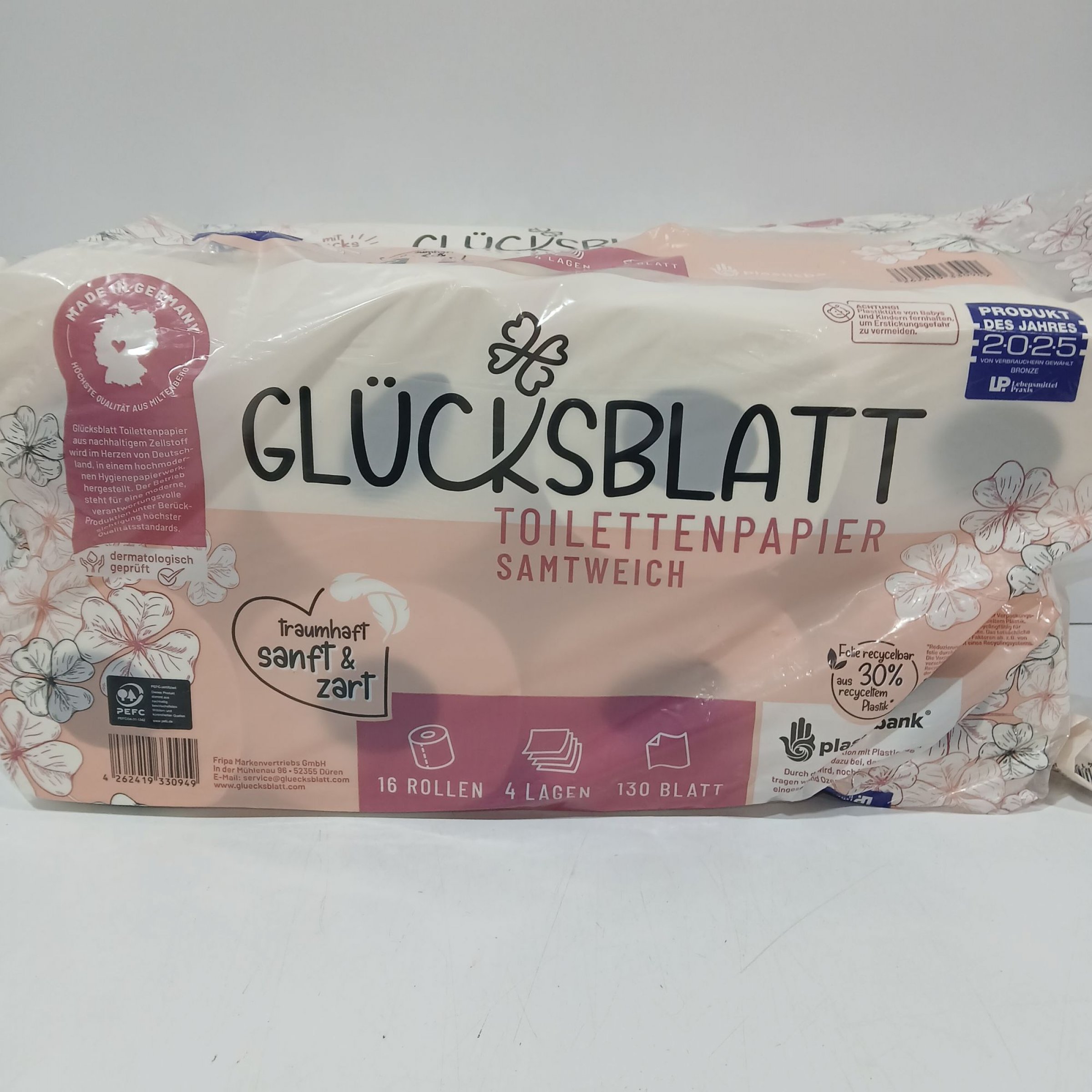 1 Packung Glücksblatt Toilettenpapier 16 Rollen 4-lagig