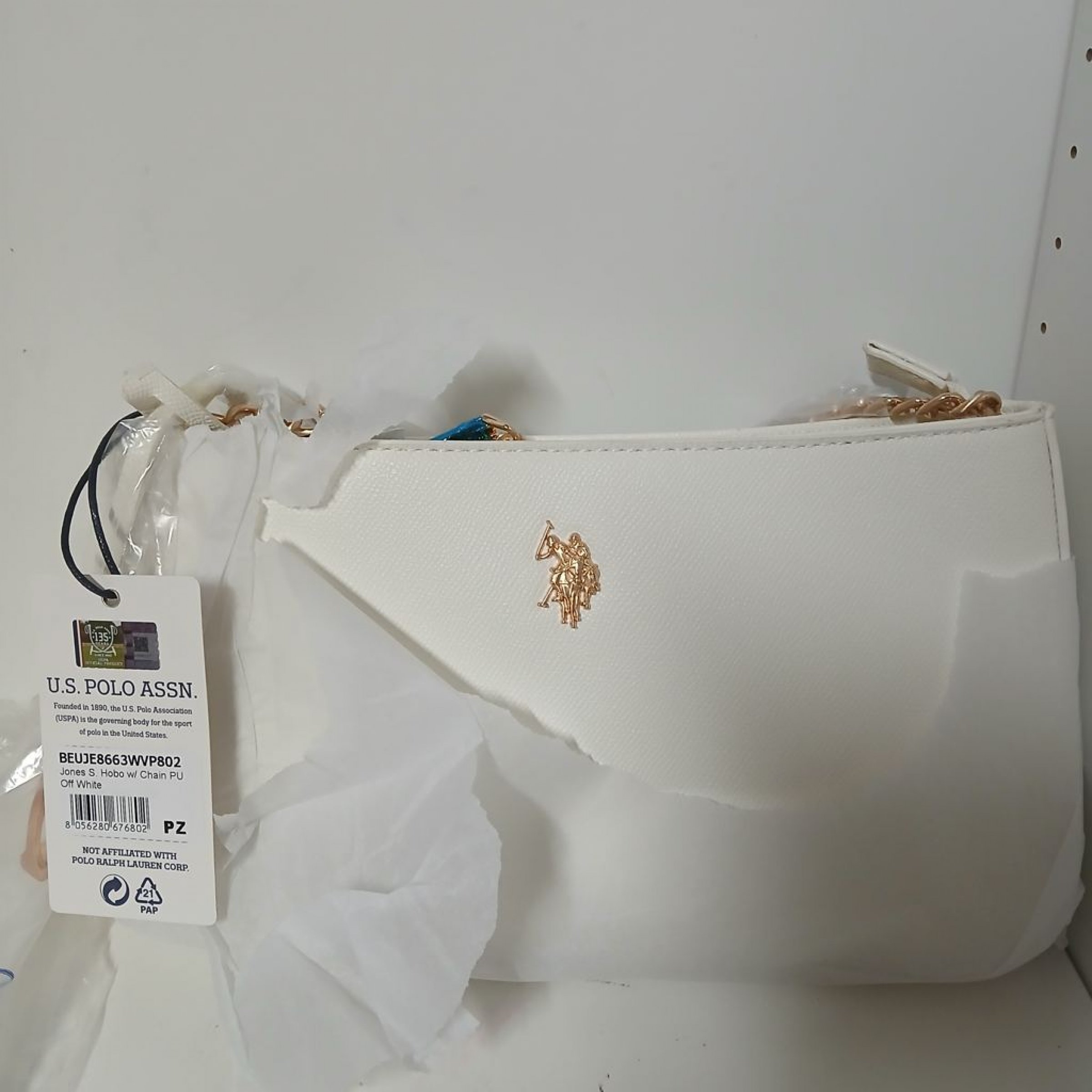 1 Stk. U.S. Polo Assn. Jones S. Hobo w/ Chain PU Off White