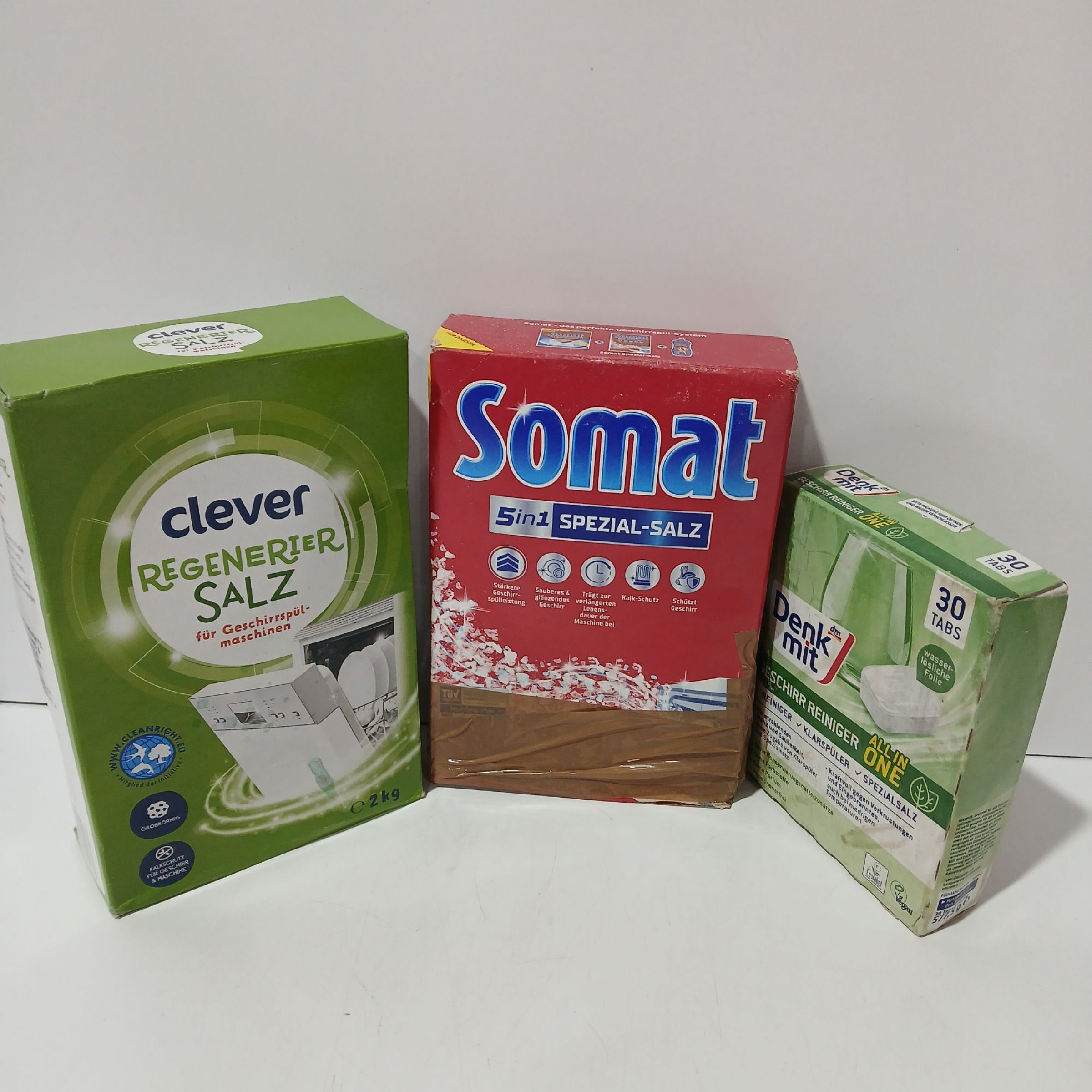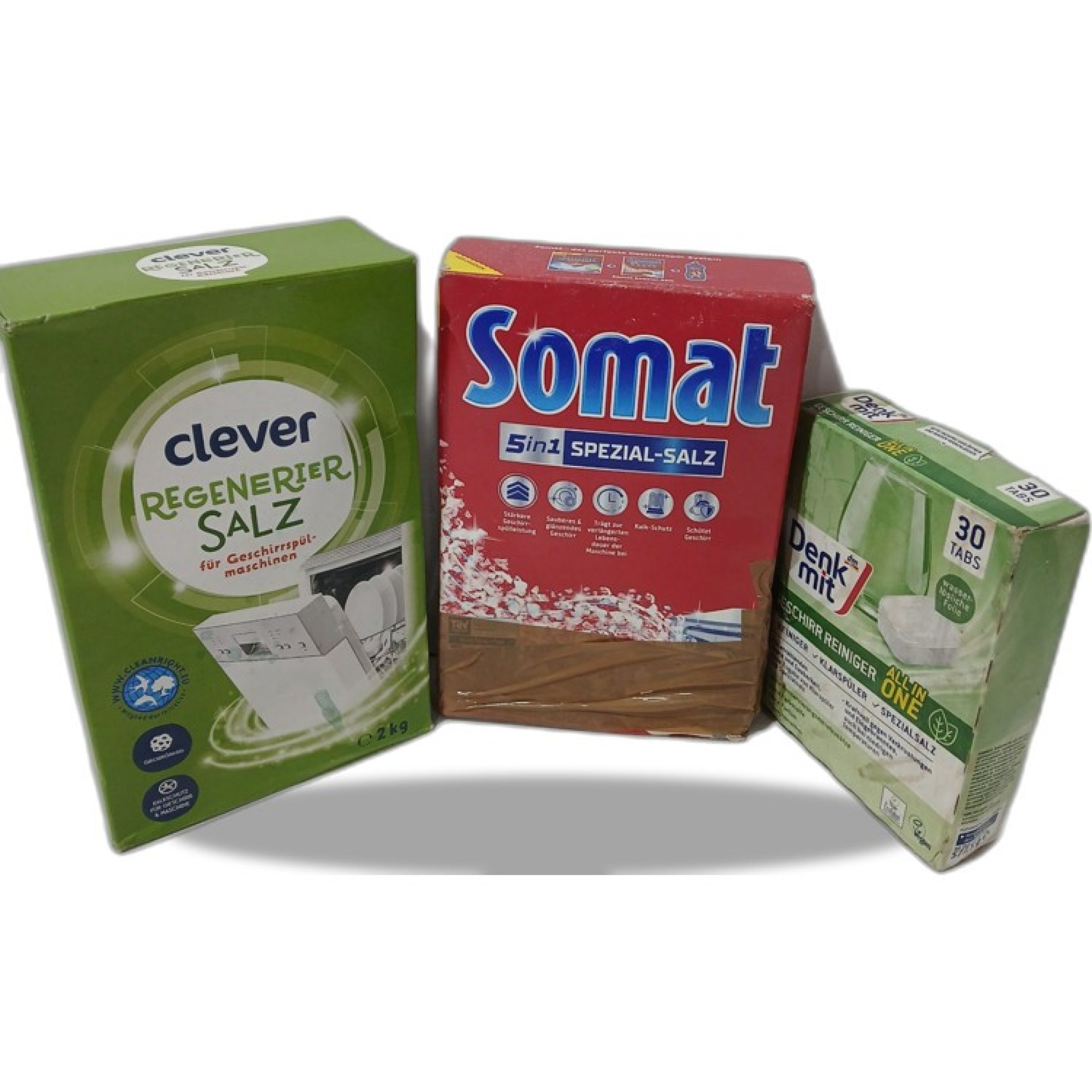 1 Set Set Geschirrspülersalz Clever 2kg, Somat 1.5kg & Denkmit 30 Tabs