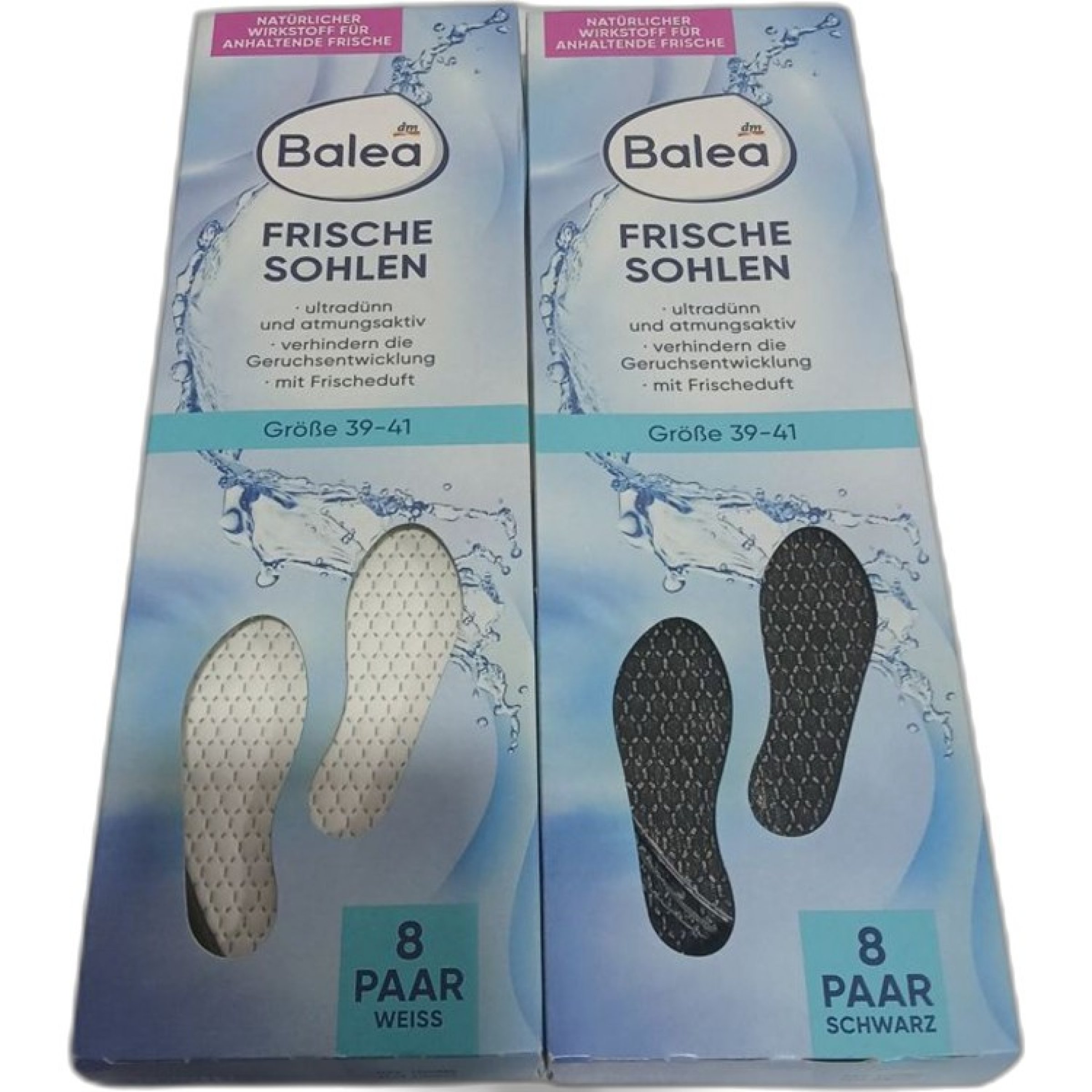 2 Stk. Balea Frische Sohlen Größe 39-41 8 Paar Weiß und 8 Paar Schwarz