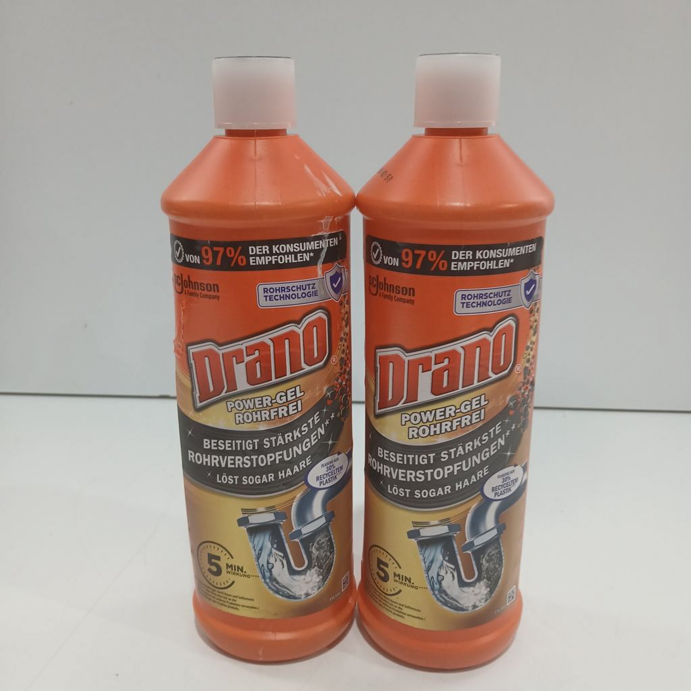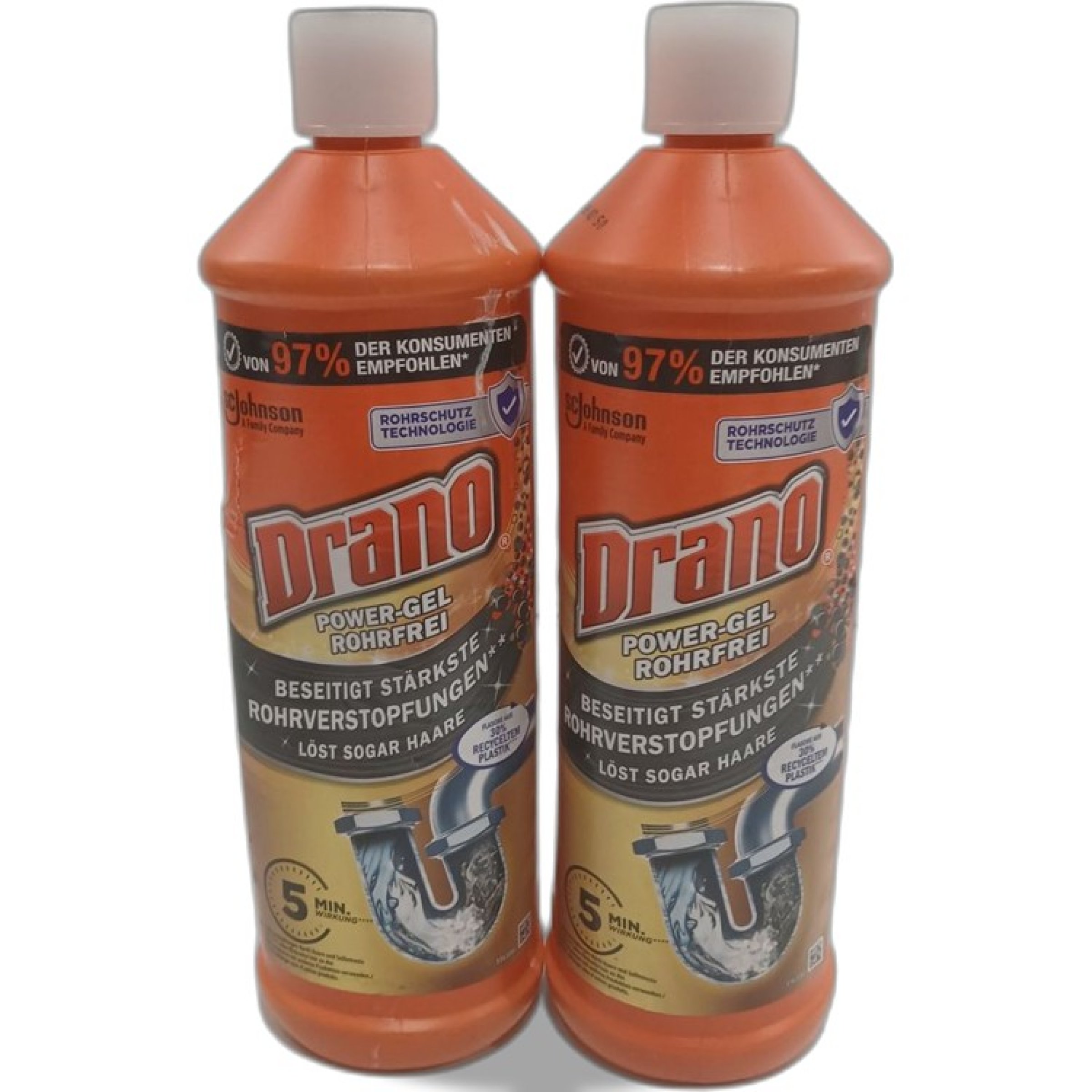 1 Set Drano Power-Gel Rohrreinigung 2x500 ml