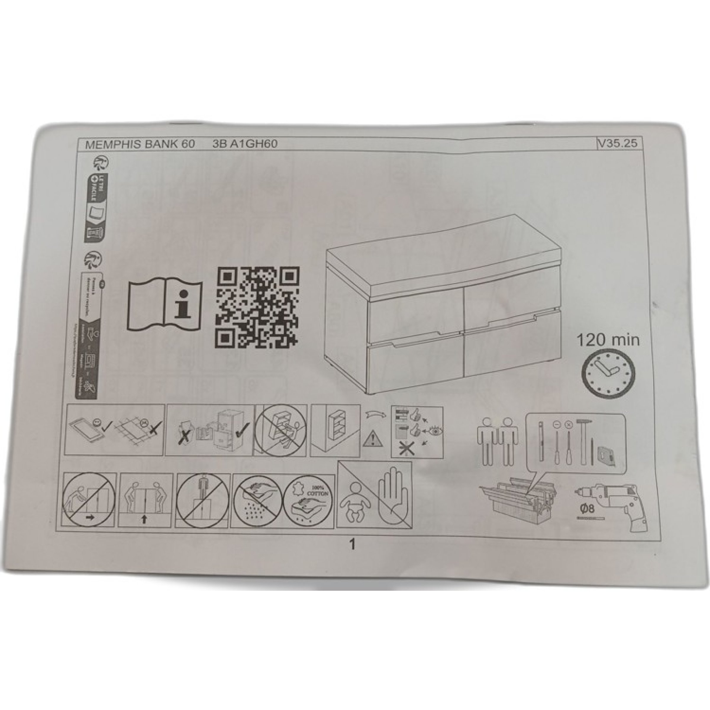 1 Stk. MEMPHIS Bank H60 Tela Graphit/Artisten Eiche MDF 3BA1GH60