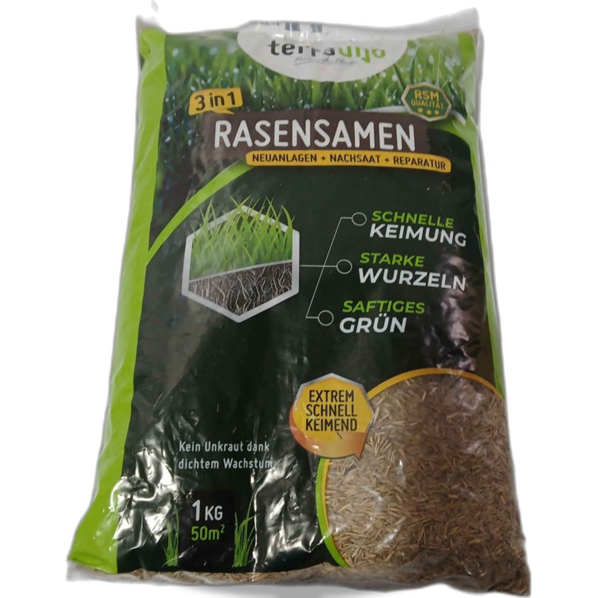 1 Stk. Terrauno Rasensamen 3in1 Neuanlagen+Nachsaat+Reperatur 1 KG ca 50 Quadratmeter