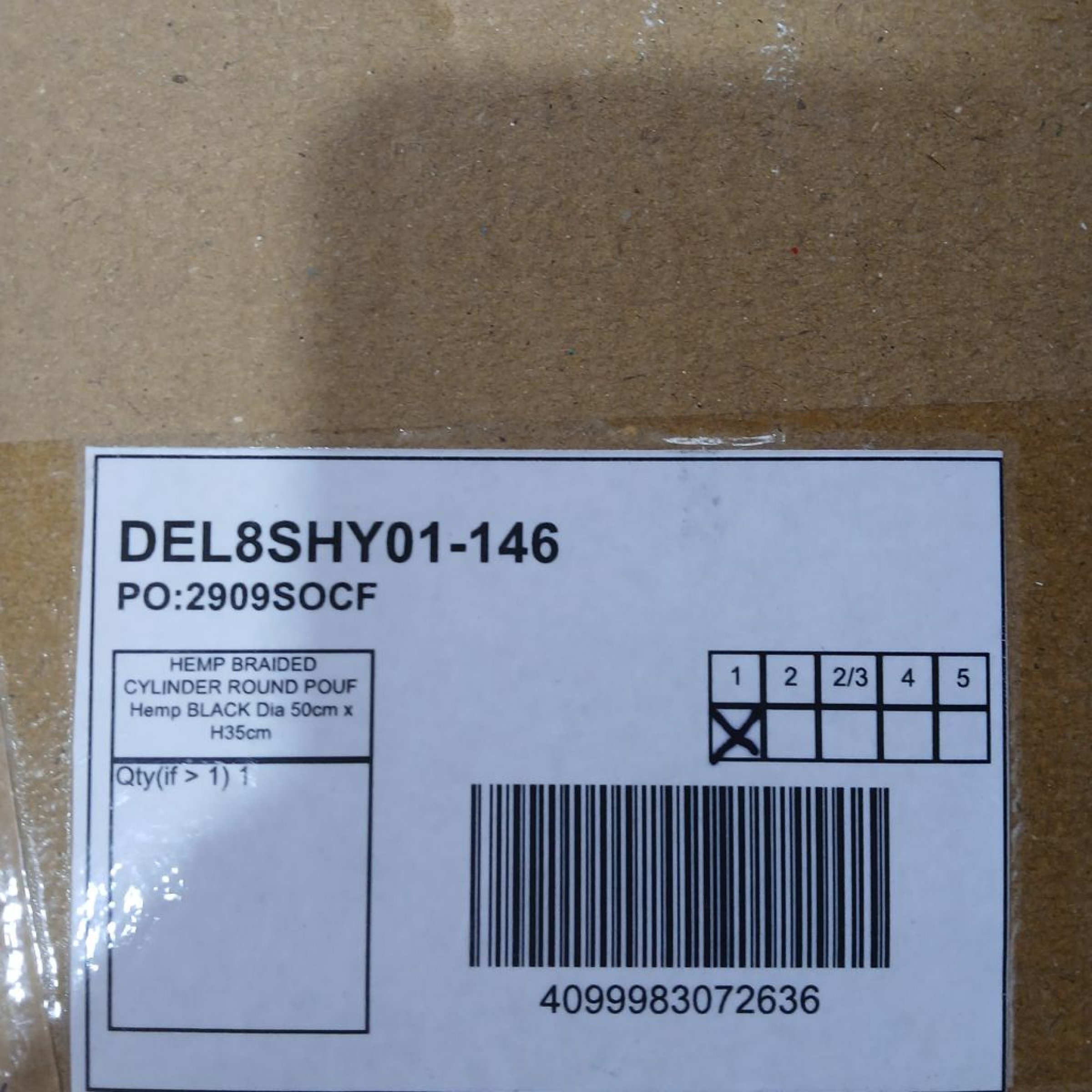 1 Stk. Westwing Collection Hemp Braided Cylinder Round Pouf 50 cm x 35 cm