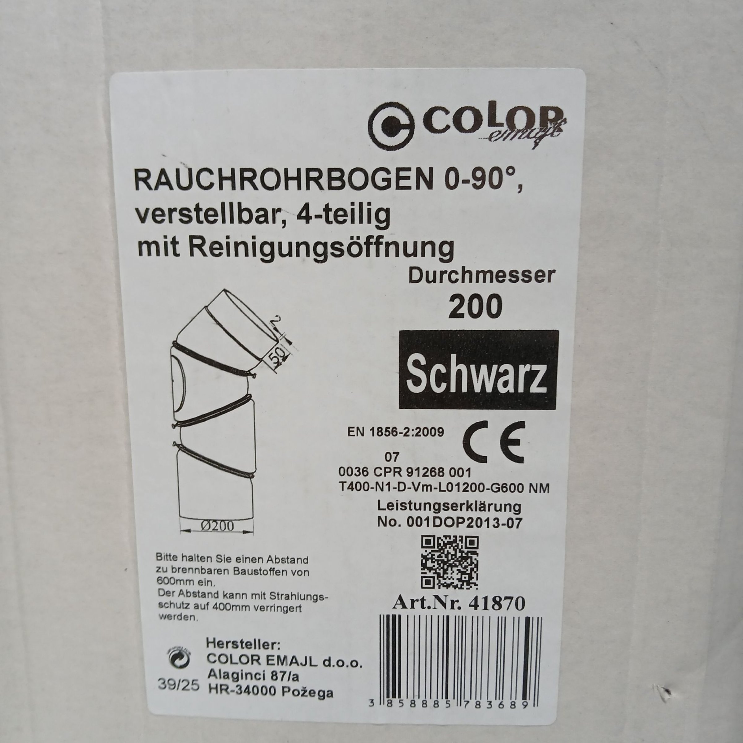 1 Stk. Color Rauchrorbogen 0-90° dm 200