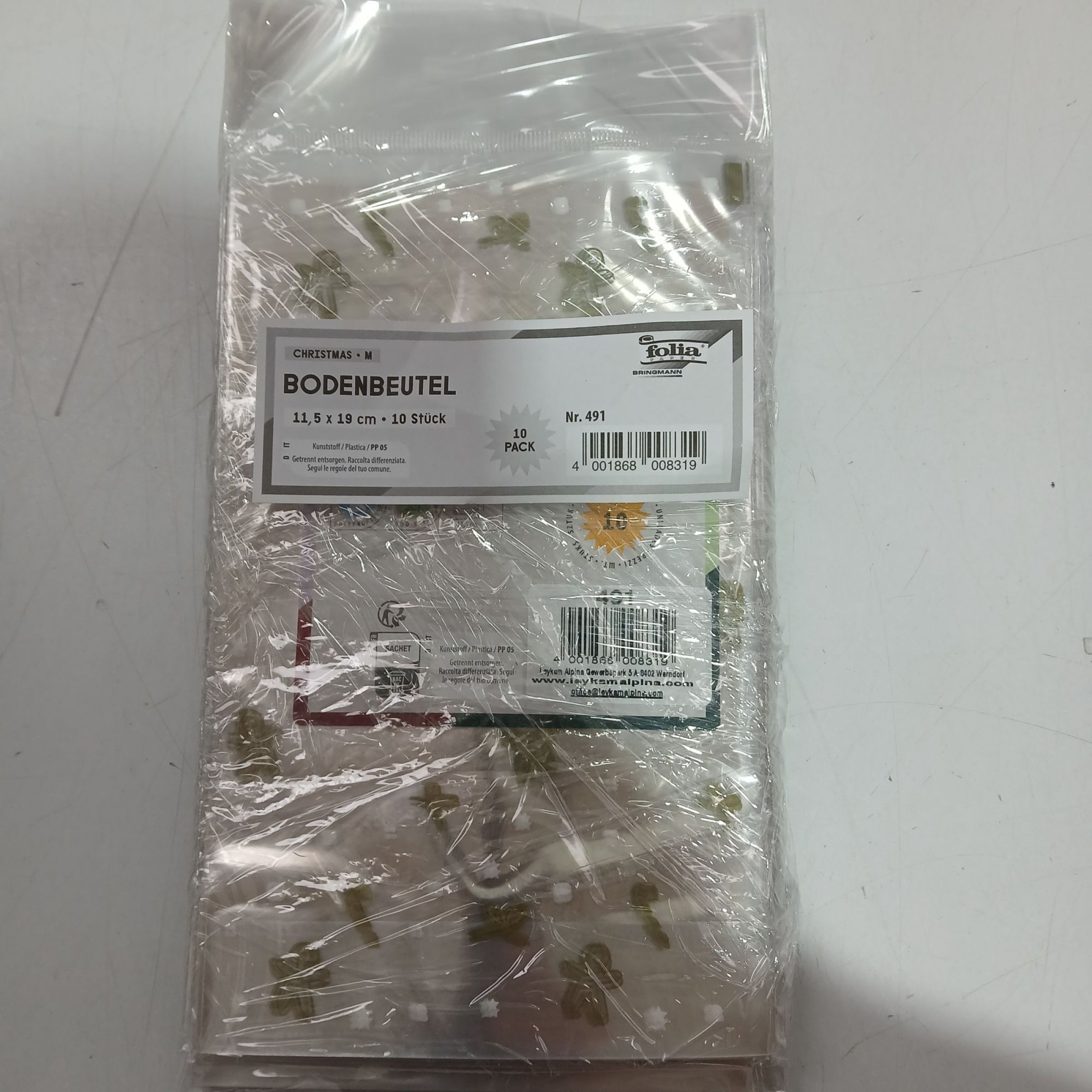 1 Set 10 x Folia Bodenbeutel Christmas 11,5x19cm 10 Stück Nr. 491
