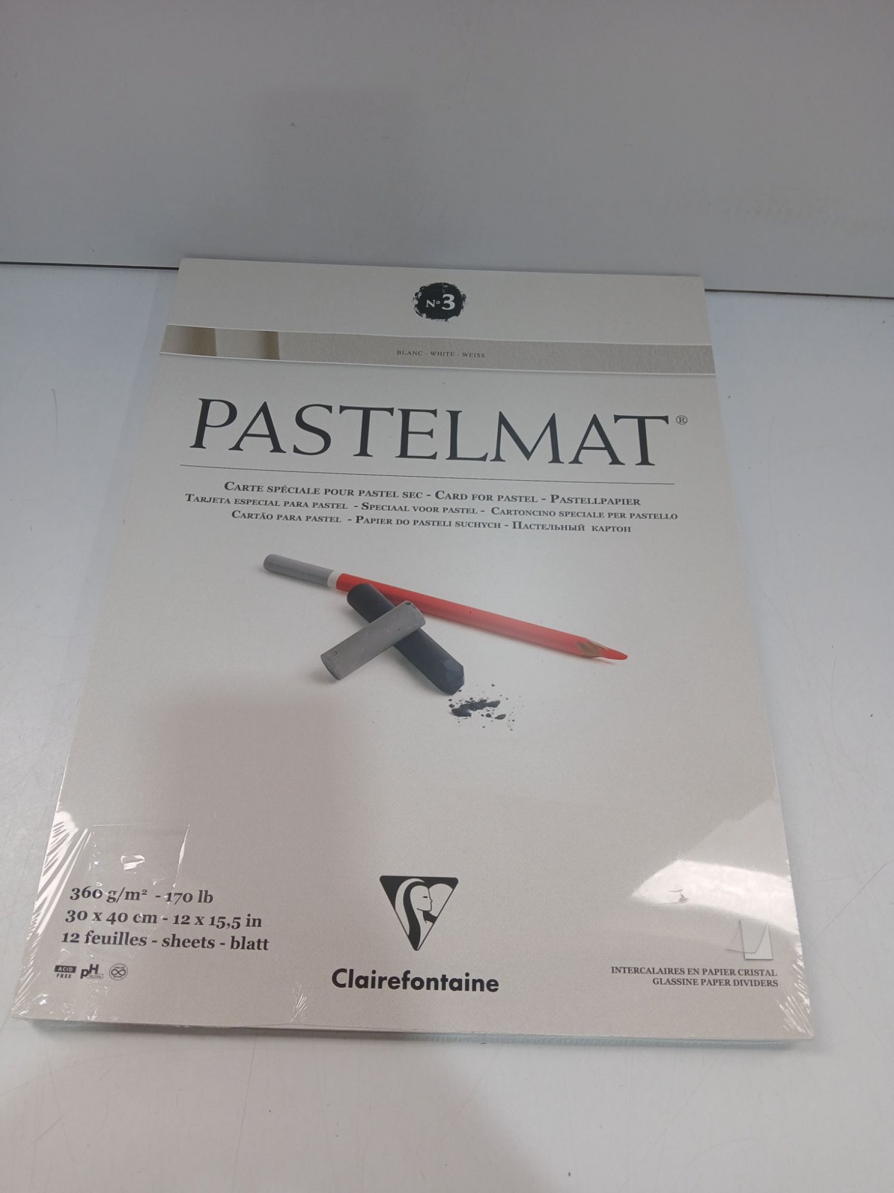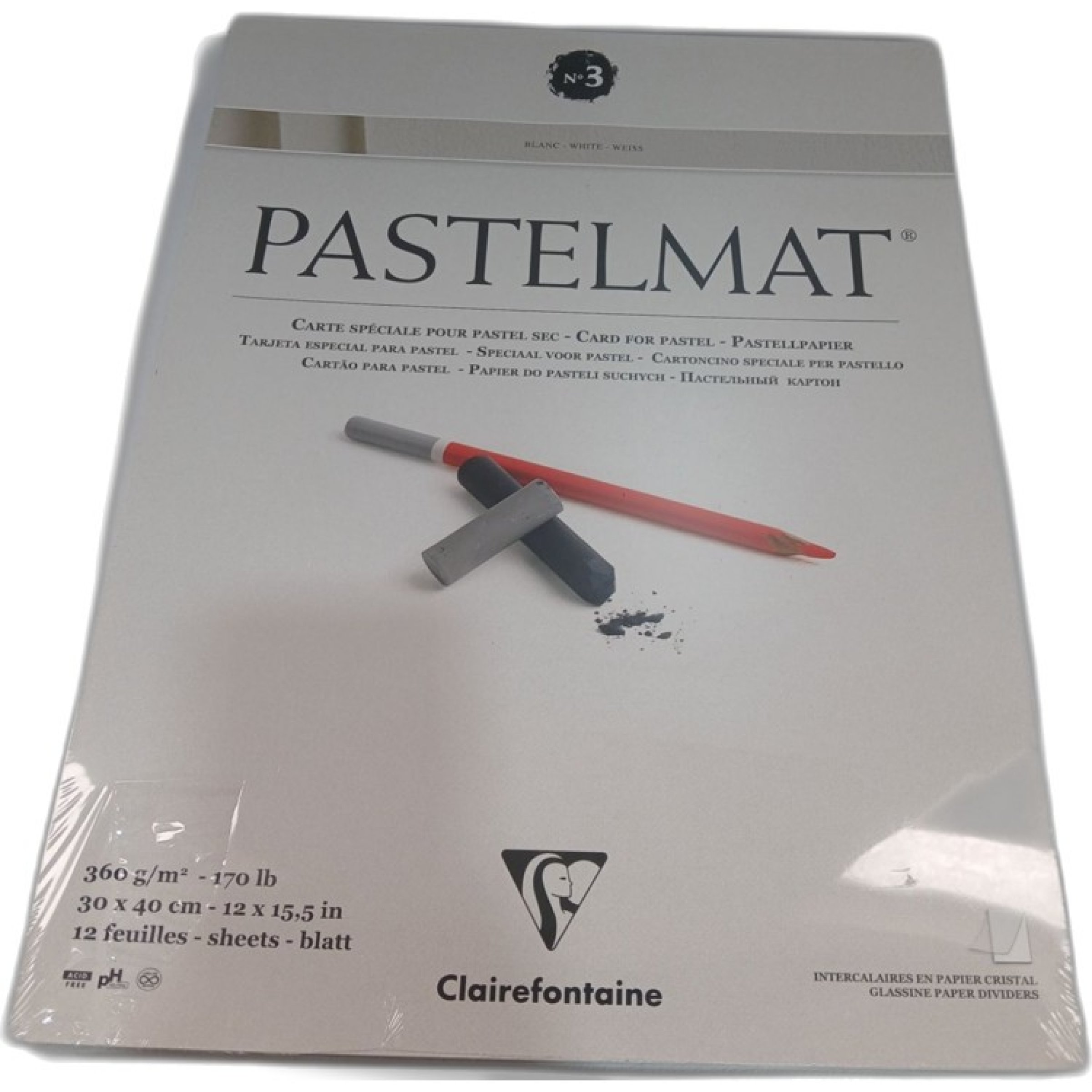 1 Stk. Clairefontaine Pastelmat Weiß 360g/m² 30x40cm 12Blatt
