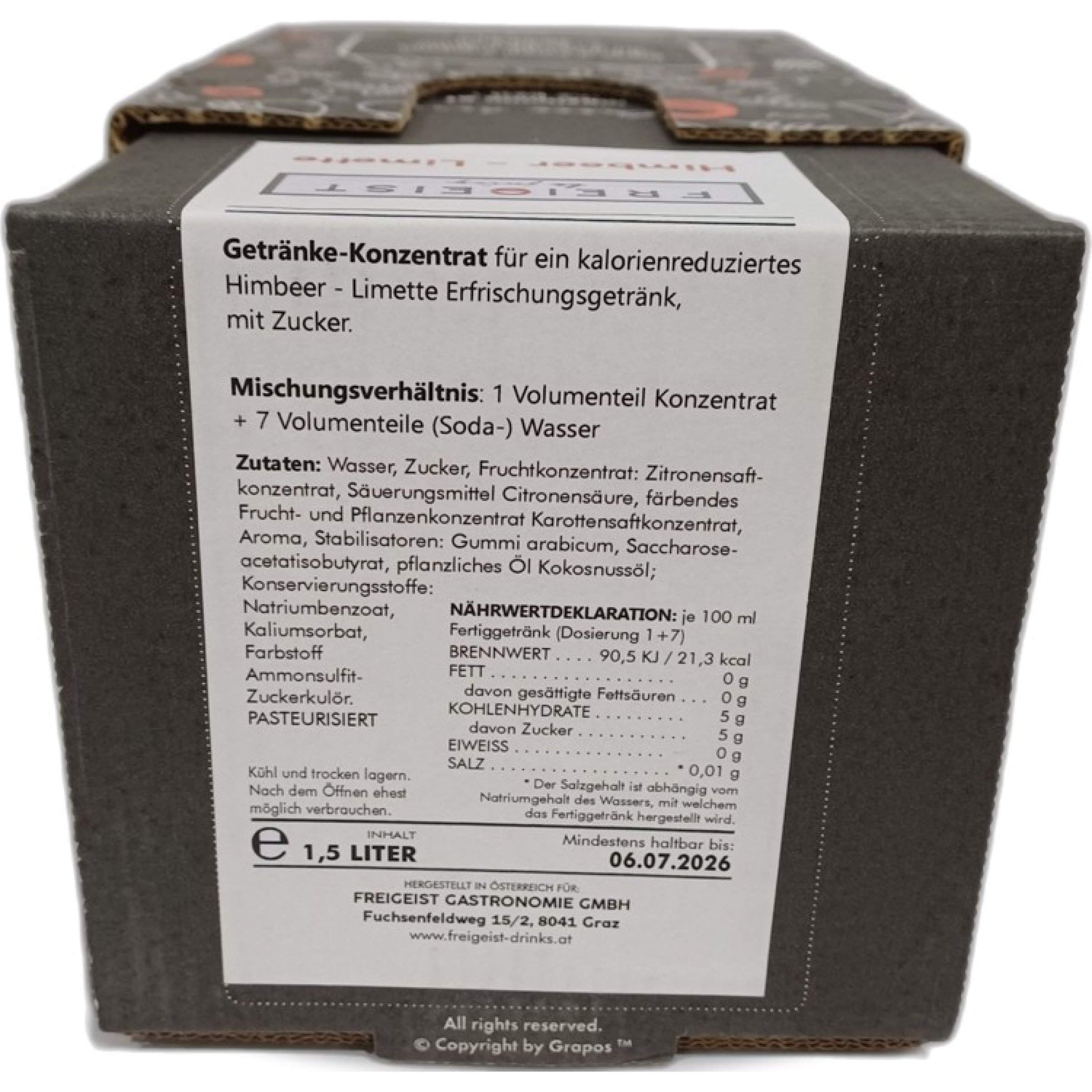 1 Stk. Freigeist Getränke Konzentrat Himbeer Limette 1,5L