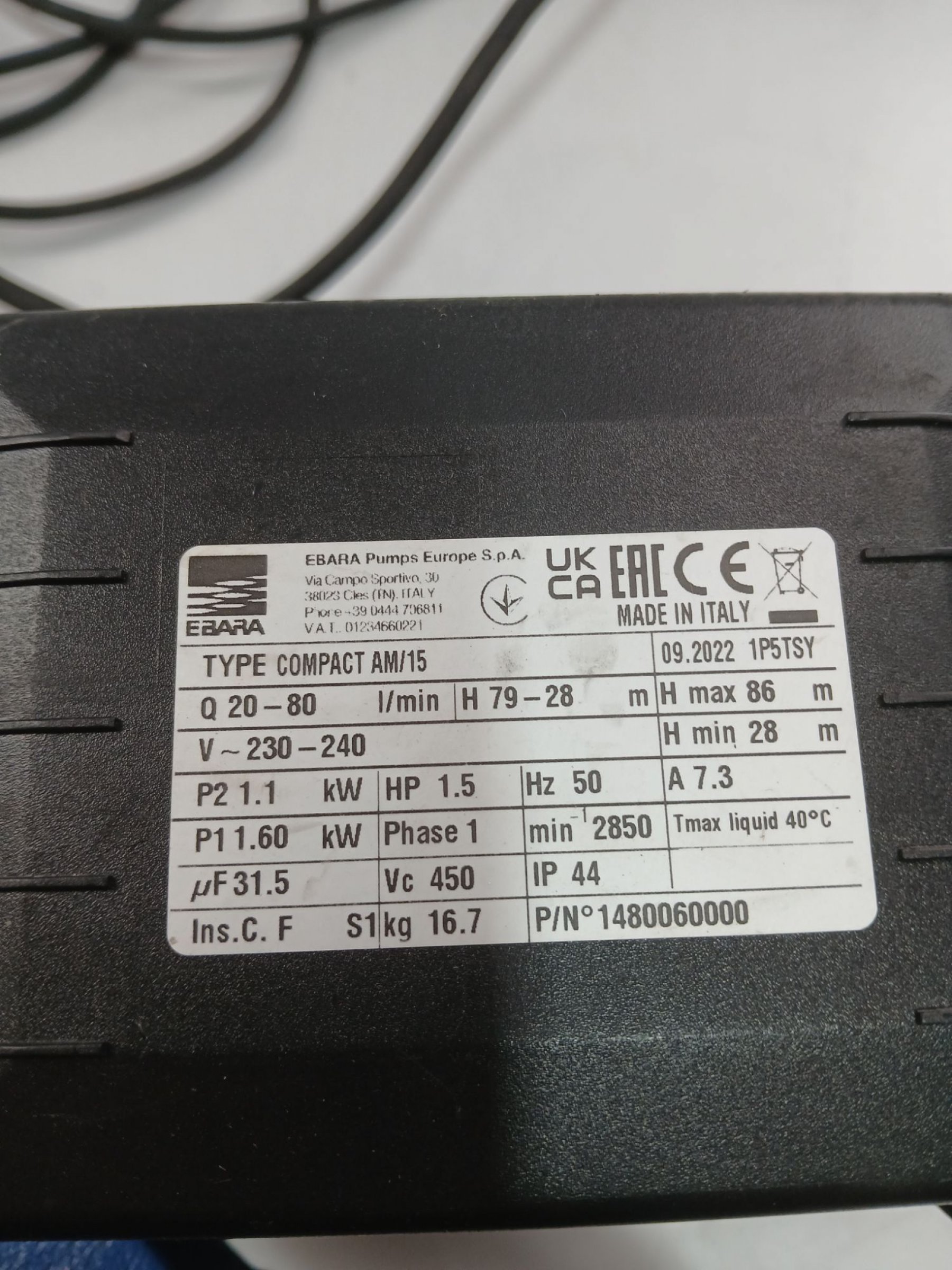 1 Stk. EBARA Kreiselpumpe blau Type: compact AM/15