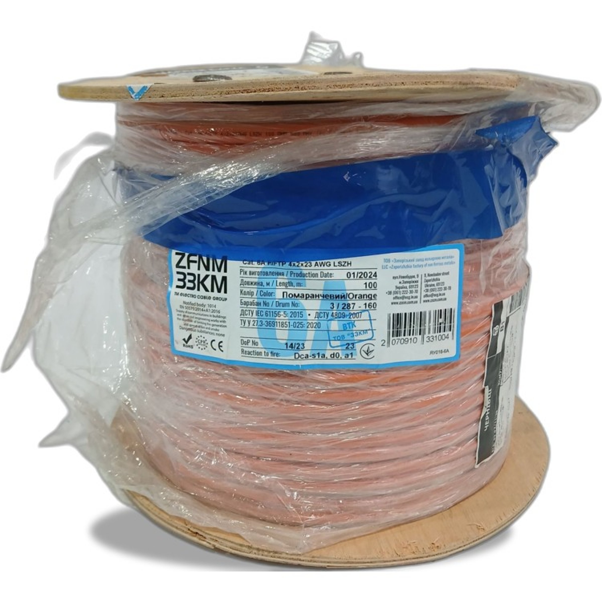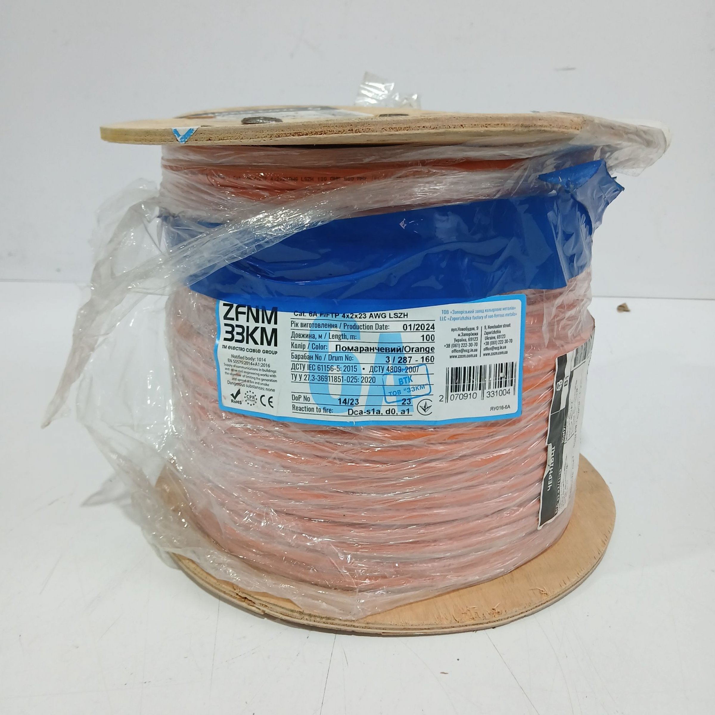 ZFNM 33KM Cat. 6A F/ FTP 4x2x23 AWG LSZH 100m