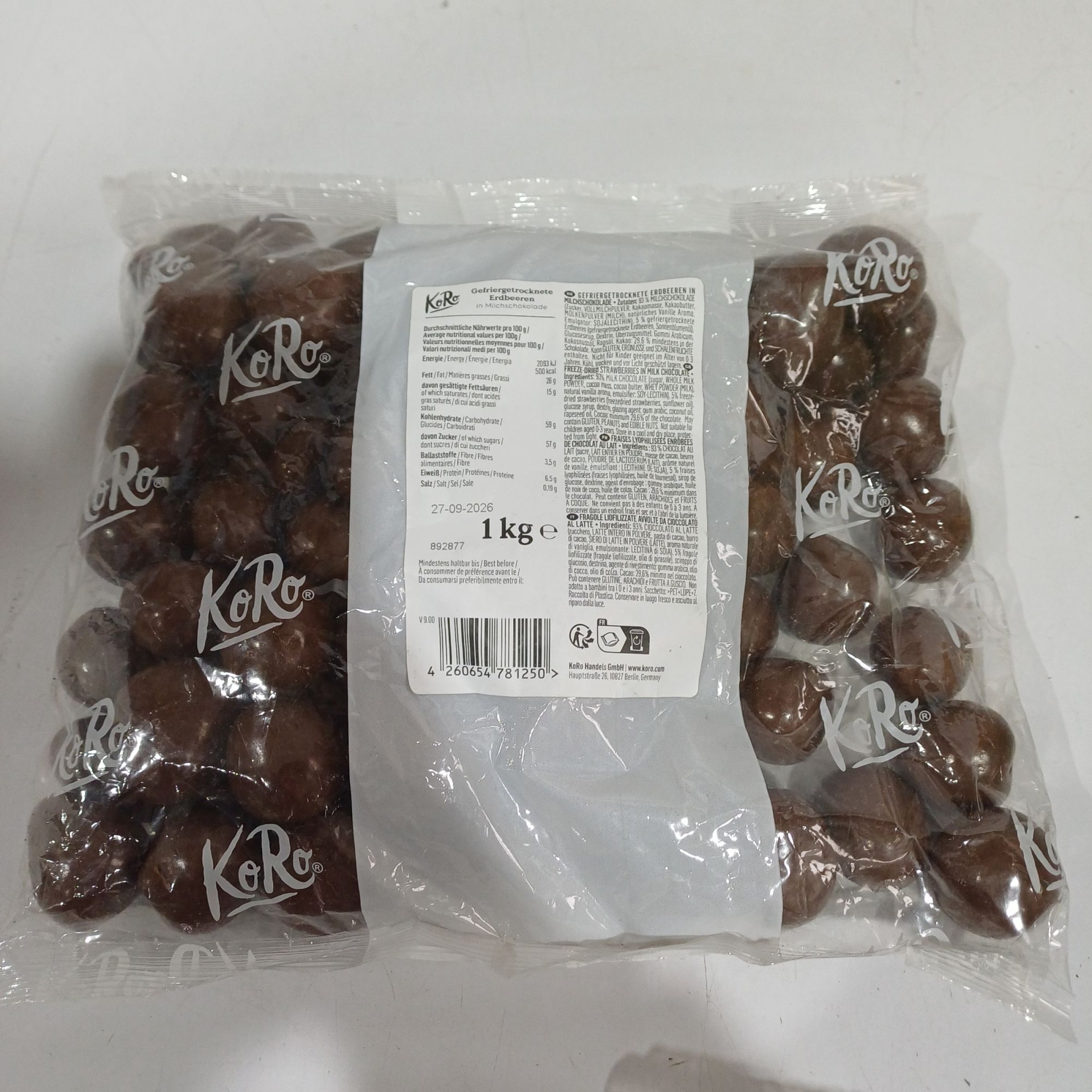 1 Stk. KoRo Gefriergetrocknete Erdbeeren in Milchschokolade 1kg