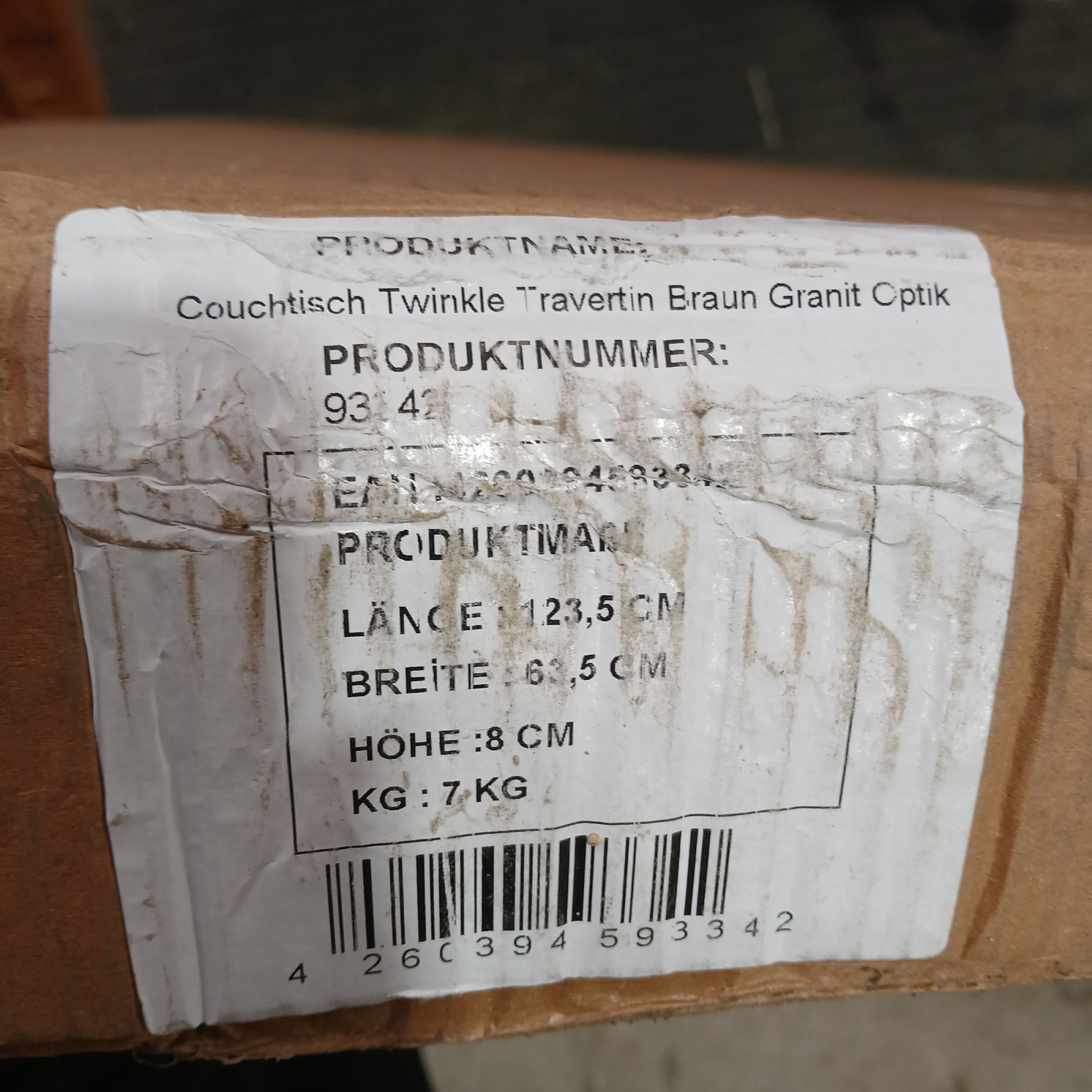 1 Stk. Couchtisch Twinkle Traventin Braun Granit Optik 123,5x63,5cm Höhe 8cm