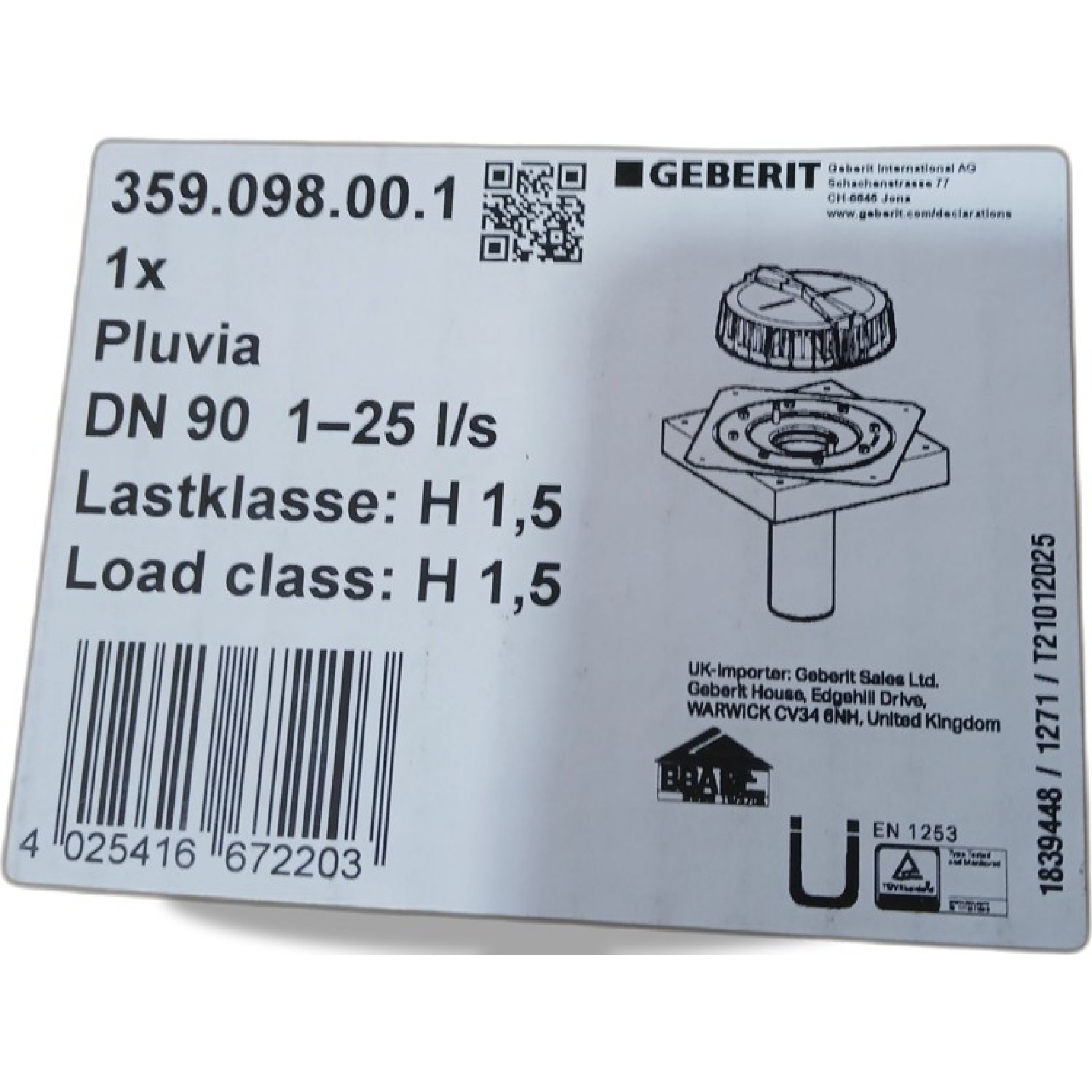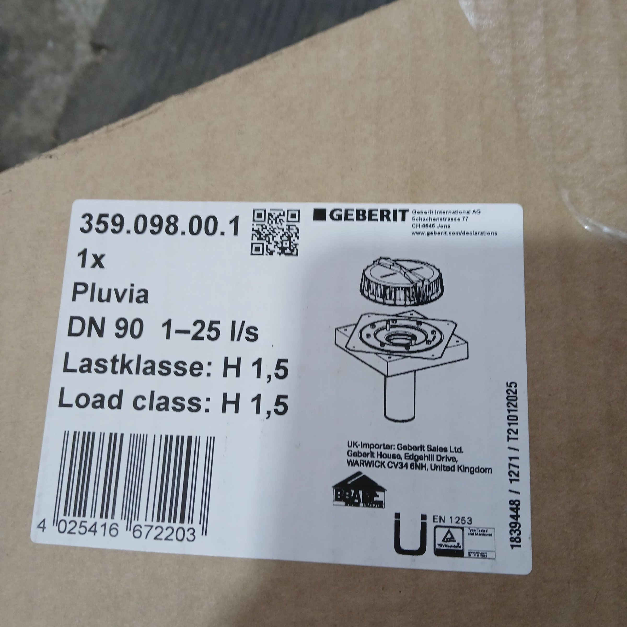 1 Stk. Geberit Pluvia 359.098.00.1 DN90