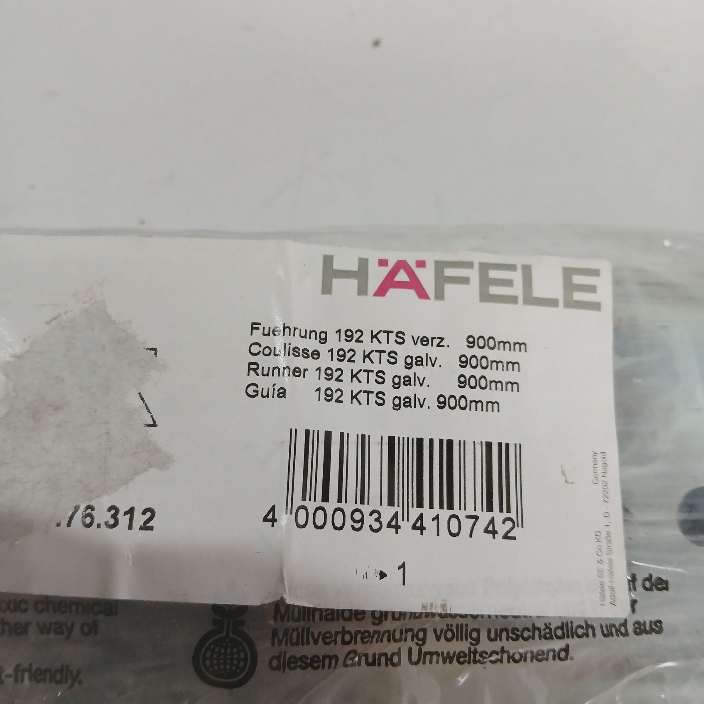 1 Stk. Häfele Führung 192KTS verzinkt 900mm
