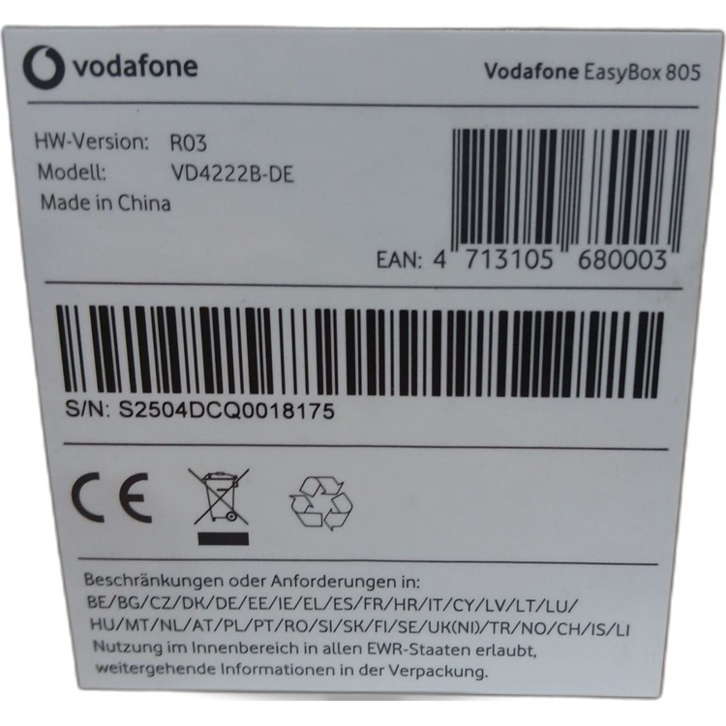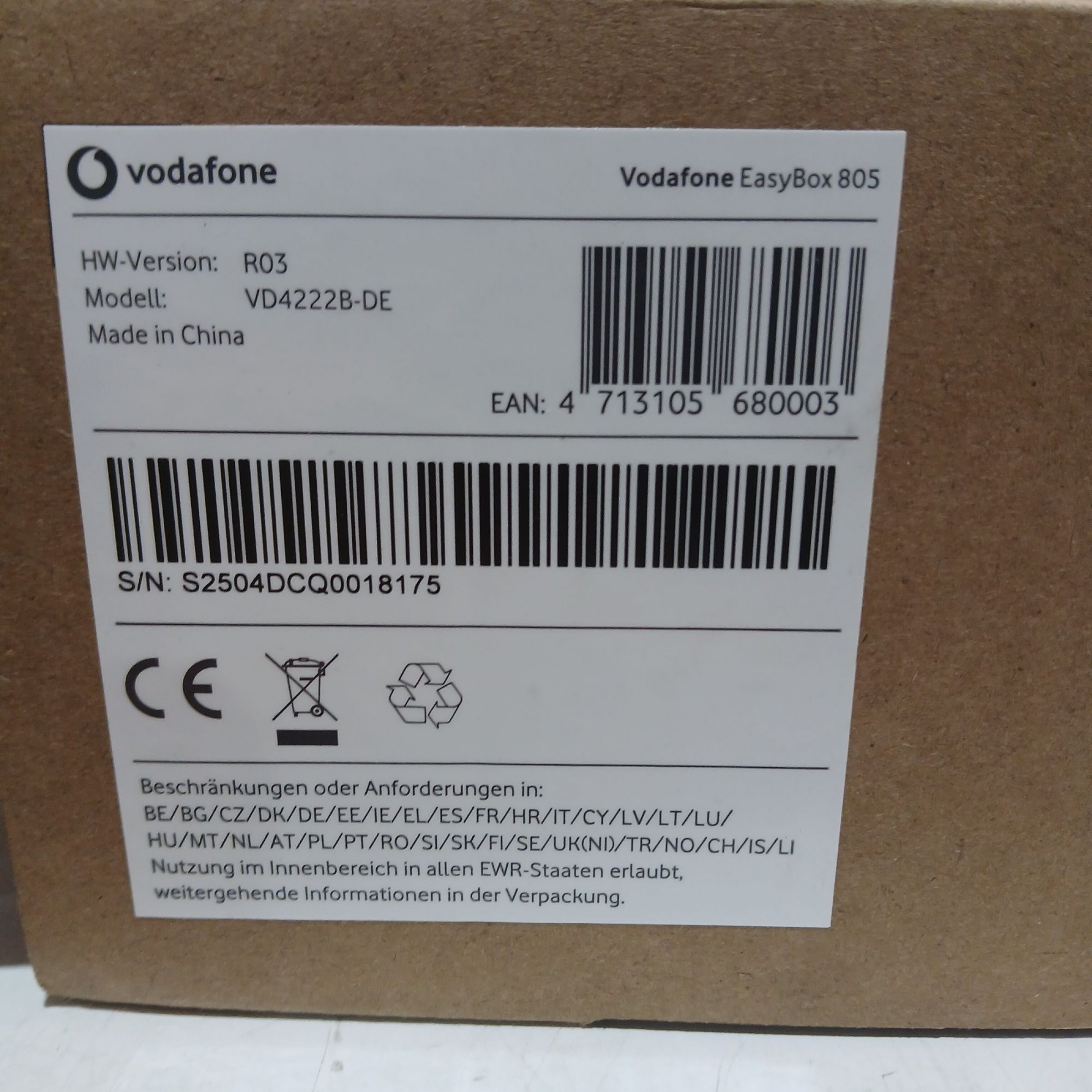 1 Stk. Vodafone Easy Box 805 Model: VD4222B-DE