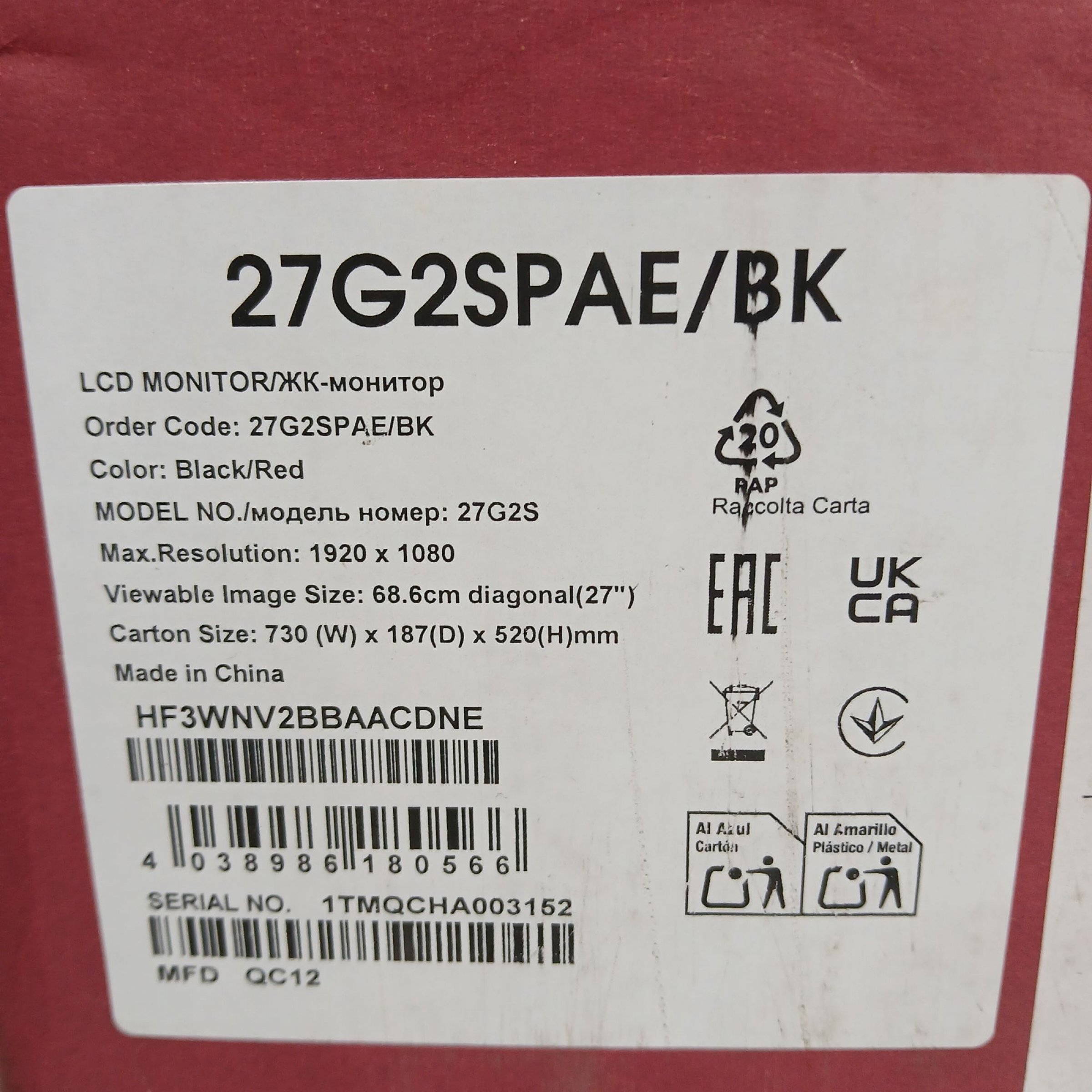AOC Gaiming Monitor 27" G2 Series 26G2SPAE/BK